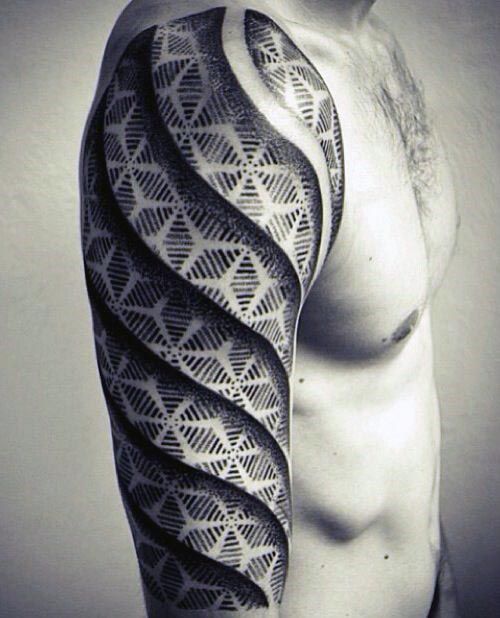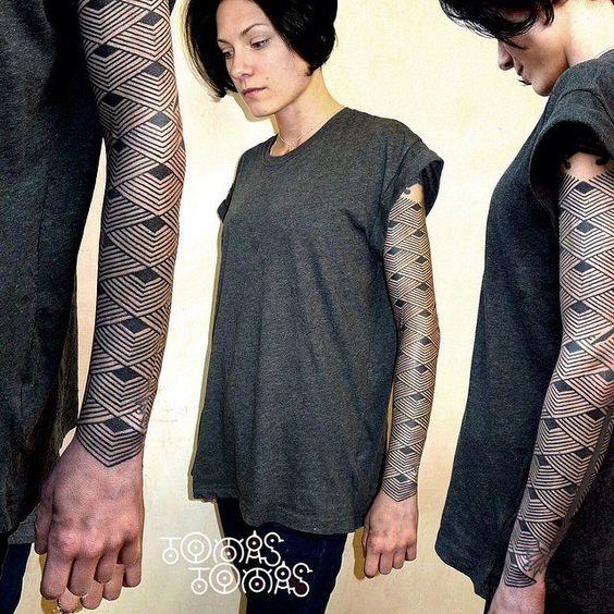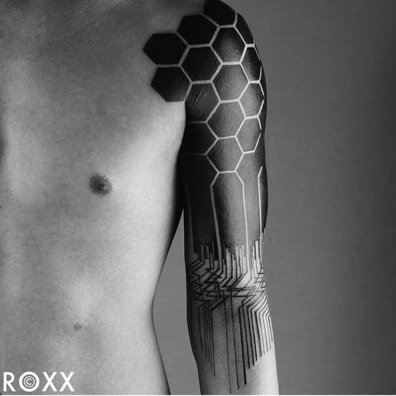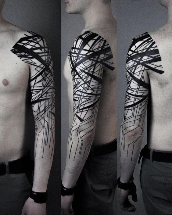 Le sous-texte du style biomécanique est le grand potentiel de l'homme, ses très grandes opportunités fournies par le progrès. Les illustrations les plus populaires sont représentées sous forme de chair déchirée, montrant la partie motrice de tout mécanisme ou structure complexe. Tous ces éléments sont incroyablement réalistes, avec des éléments minutieusement exécutés tels que: ressorts, écrous, pistons, engrenages et autres. Le plus souvent, les tatouages biomécaniques sont faits à l'épaule ou à l'intérieur du bras, ce qui donne au modèle un dynamisme dû au mouvement constant du bras. Le nom de tatouage tribal manchon parle pour lui-même, car en traduction, tribal signifie "nominal", "tribal", raison pour laquelle un tel tatouage sert de signe personnel ou de talisman. La plupart des modèles sont réalisés sous la forme de lignes avec des extrémités nettes entrelacées. La plupart des tatouages tribaux sont réalisés dans une couleur, mais le résultat final dépend de l'imagination et du désir du propriétaire.