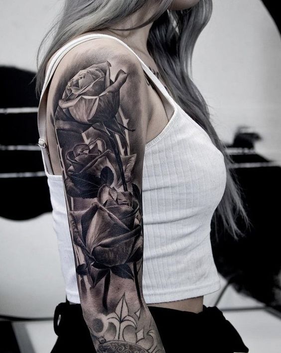 Les femmes aussi souvent que les hommes appliquent un tatouage sur leur corps, car ils fournissent une occasion de montrer leur individualité et de se démarquer de la foule. L'intrigue d'un tatouage féminin sous la forme d'une manche doit être sélectionnée avec soin, car l'exigence principale de cette image de sous-vêtement est l'exactitude, la couleur et la beauté. Le plus souvent, les filles choisissent le style du réalisme, chicano, old school. La manche de tatouage est caractérisée par des motifs naturels. Cela peut être un papillon, une fleur, des chats sauvages ou apprivoisés, on trouve souvent des branches de sakura. Il y a des violations des normes connues et les femmes appliquent des dessins avec des serpents, des diables et des croix.