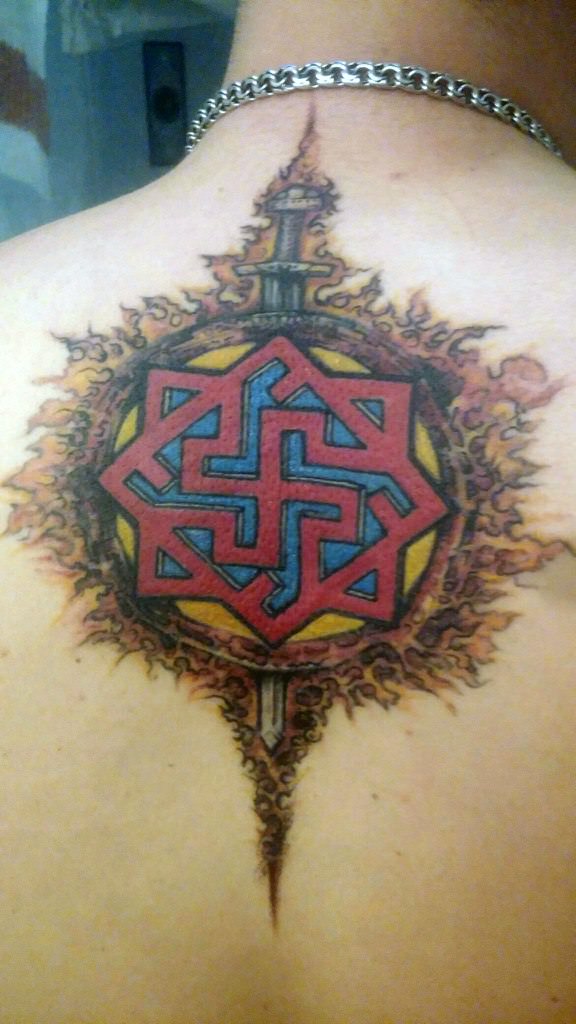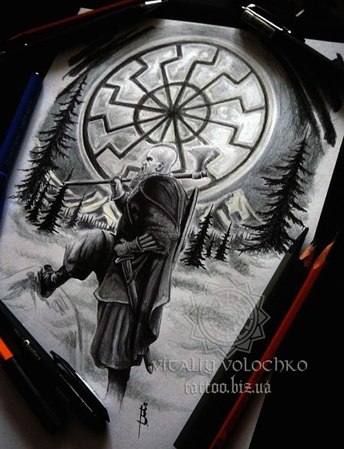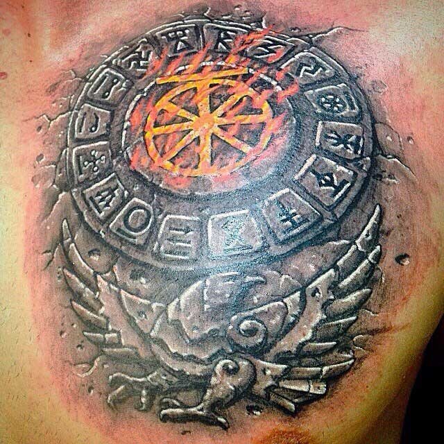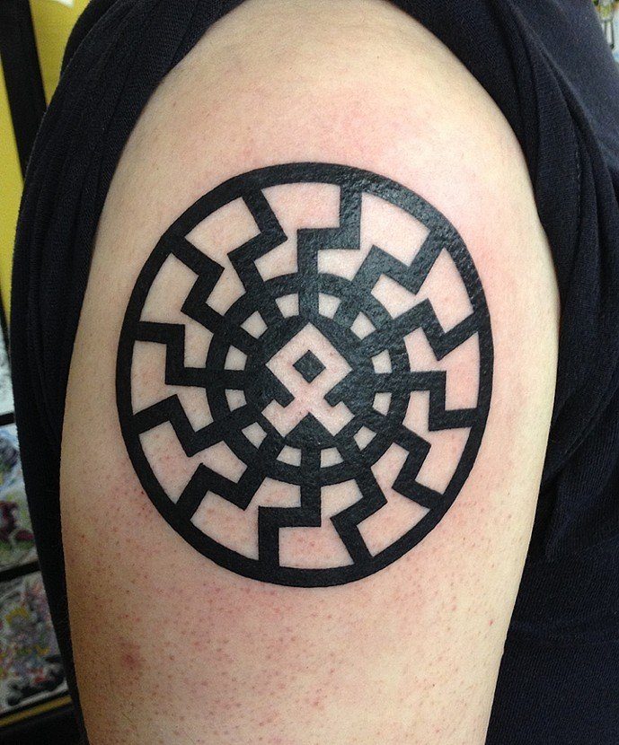 - Alatyr - ce tatouage est considéré comme l'un des plus communs de tous les modèles runiques. Alatyr garantit l'équilibre entre le bien et le mal, la lumière et l'ombre, ainsi que toute vie.