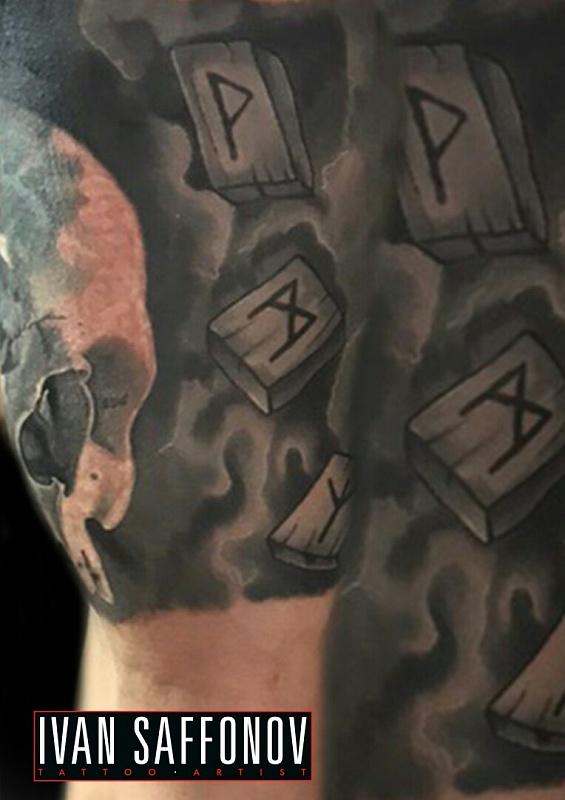 En réalisant des images runiques sur le dos, une personne se protège des maladies, des échecs et des problèmes. C'est une expression de force intérieure et de confiance en soi. Les dessins au dos portent une très grande énergie positive, ce qui procure équilibre et calme intérieur.