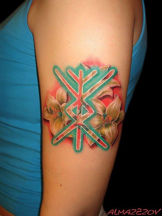 Comme déjà mentionné, les tatouages sous forme de runes agissent principalement comme des talismans. Les dessins sont appliqués sur le corps pour se protéger contre les forces des ténèbres, les troubles et pour aider à trouver un chemin de vie. Très souvent, les runes sont associées à un portrait d'une personne proche et chère, ce qui lui confère une protection qui fait office de talisman. Chaque signe de la rune a sa propre signification: