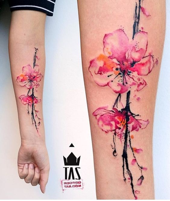 Tatouages à l'aquarelle avec sakura