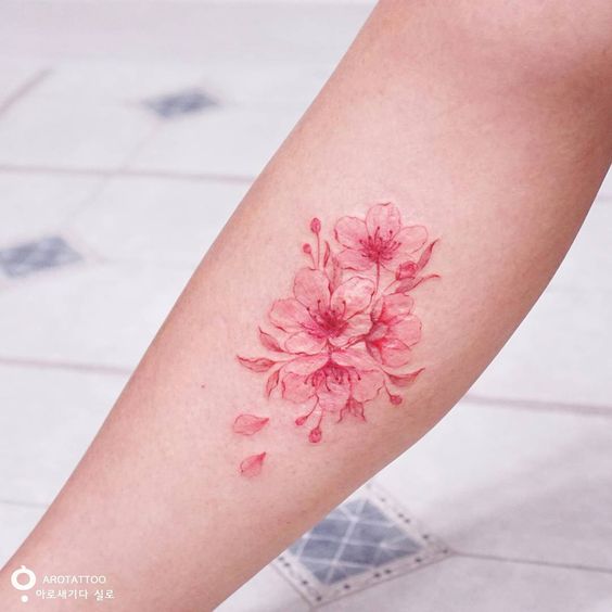 Le tatouage à l'aquarelle attire particulièrement l'attention, surtout s'il s'agit d'une image florale. Il est donc plausible et réaliste qu'aucune fleur ne soit écrasée par rapport à sakura. La palette de pastel rend la composition très tendre. Les tatouages à l'aquarelle peuvent être appliqués à n'importe quelle partie du corps, peu importe le teint.