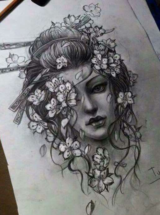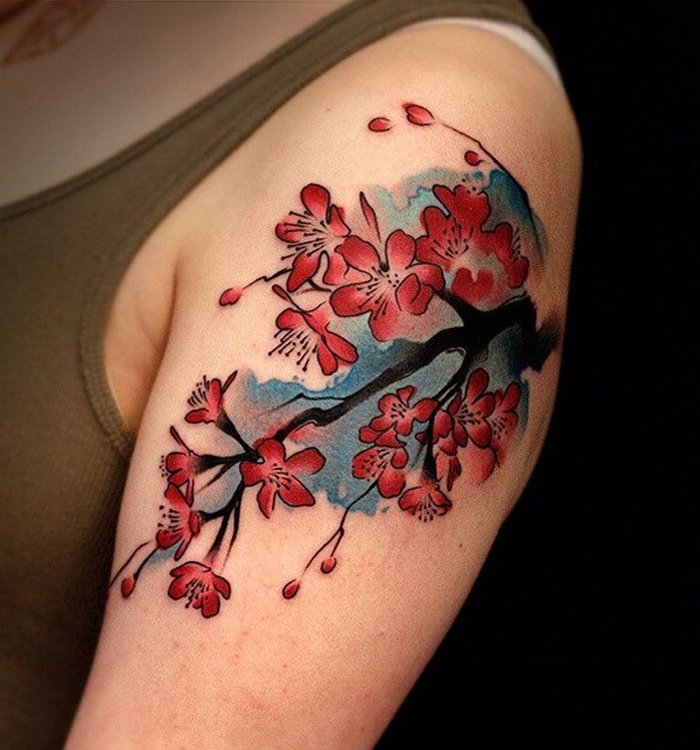 Sakura Tattoo: signification, croquis et photo de cerisier japonais selon diverses techniques