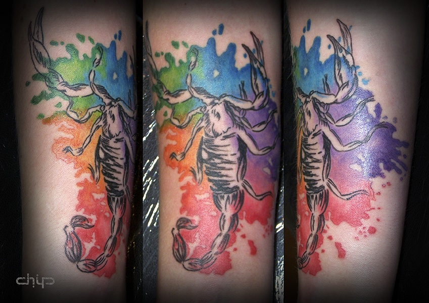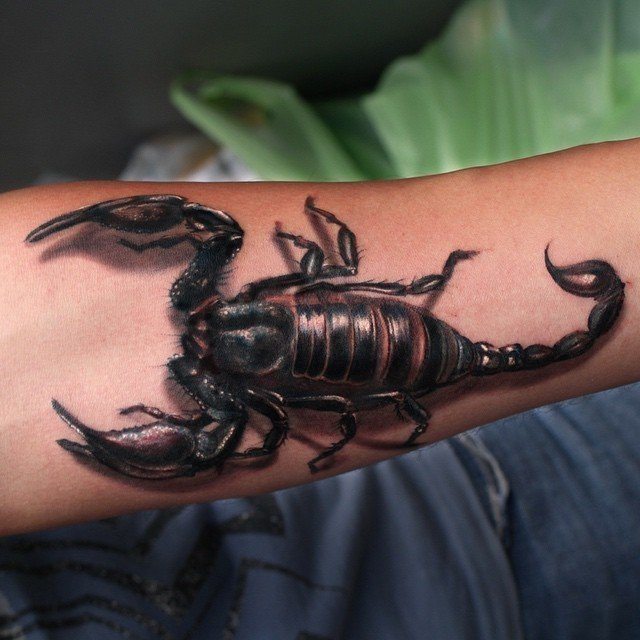 Un tatouage représentant un insecte tel qu'un scorpion a plusieurs significations. La variété des interprétations d'un tel tatouage dépend du fait que, pendant de nombreux siècles, différents peuples ont donné au scorpion des caractéristiques différentes. En raison de sa morsure mortelle dans de nombreuses nationalités, le scorpion est associé à la mort. Mais en même temps, beaucoup de gens considèrent cet insecte comme une personnification de la force, du courage, de l'endurance et de la vengeance. En outre, parmi de nombreuses nationalités, le scorpion sert de talisman et est un symbole de la justice.