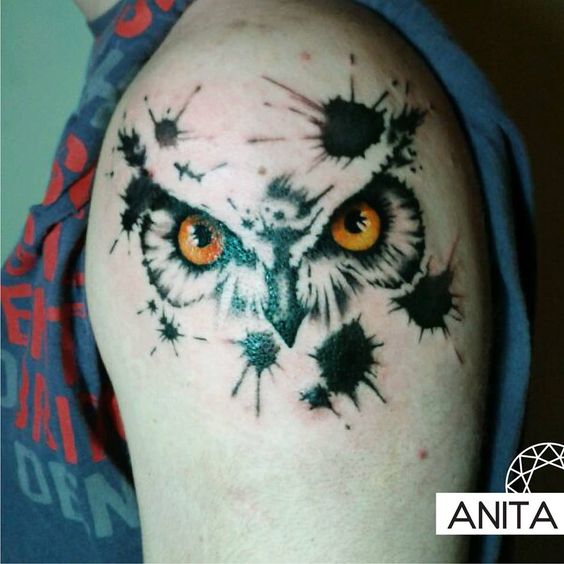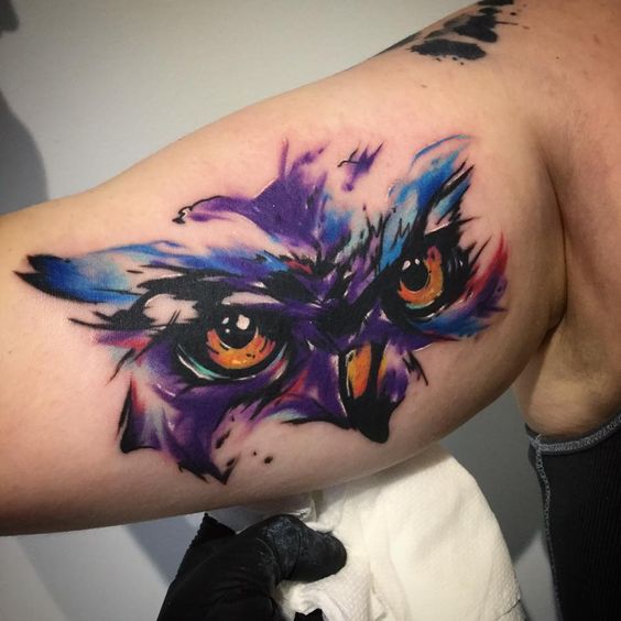 Le mystère du tatouage en forme de hibou est associé non seulement à son exécution à l'encre noire, car les dessins en couleur sur le corps portent également un certain mystère. Le tatouage de hibou n'est pas toujours réaliste. Très souvent, les personnes gaies choisissent des variantes de couleur fabuleuses d’un tatouage sous la forme d’un bel oiseau. Les bandes dessinées de tatouages indiquent une attitude positive envers la vie et les difficultés sociales.