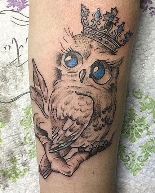 Très souvent, des personnes judicieuses et déterminées se font tatouer avec un hibou sur le bras. Les jeunes filles préfèrent également voir un hibou élégant sur leur main, qu’elles associent à un style de vie amusant la nuit. Tous ceux qui aiment les énigmes, les surprises et les découvertes étonnantes peuvent voir un tatouage de hibou. Cela ne veut pas dire qu’il n’est pas douloureux de faire un tatouage avec un hibou sur le bras, mais c’est néanmoins là que la peau est moins sensible aux manipulations externes de l’aiguille. Si le tatouage avec un hibou est minuscule et est situé sur l'avant-bras, il peut toujours être caché des yeux inutiles sous les manches des vêtements.