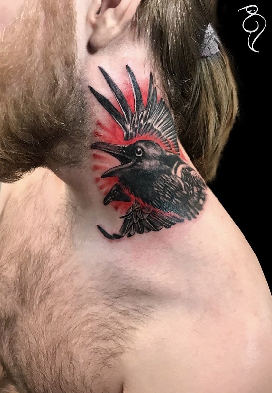 - Corbeau tatouage sur le cou