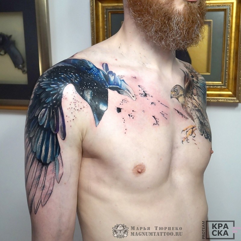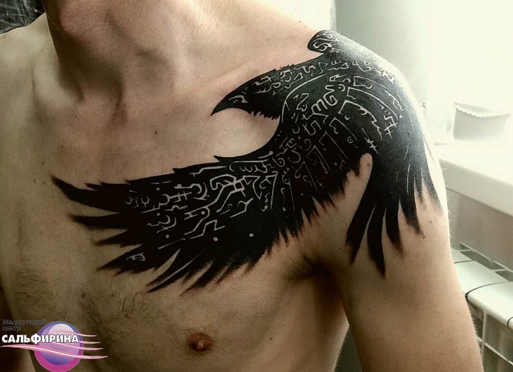 - Tatouage de corbeau sur la poitrine