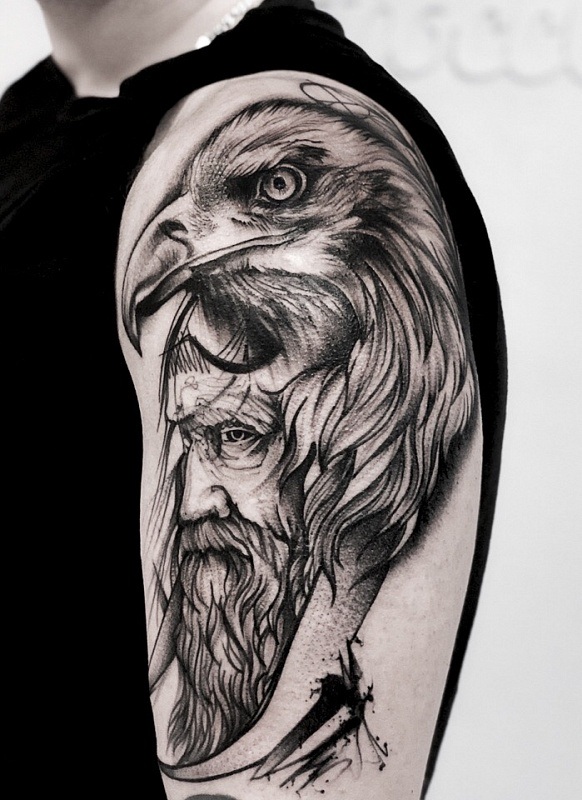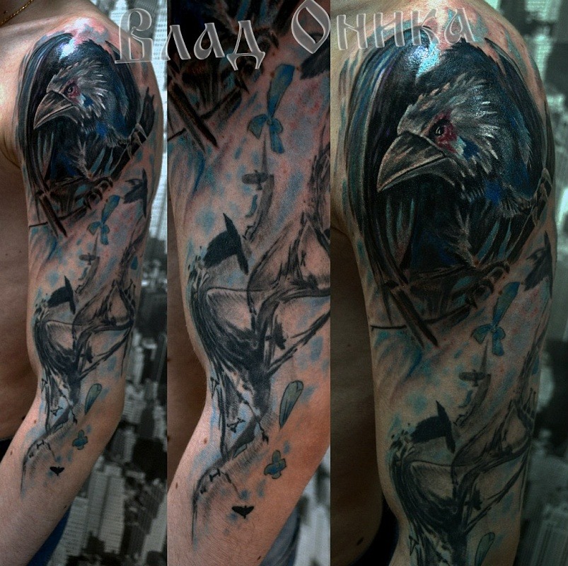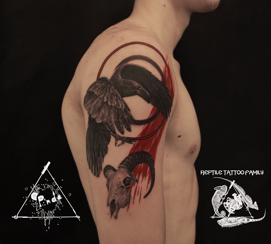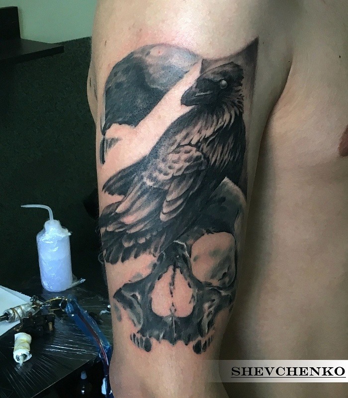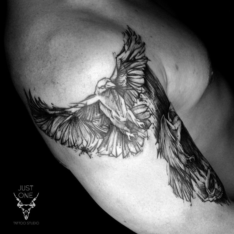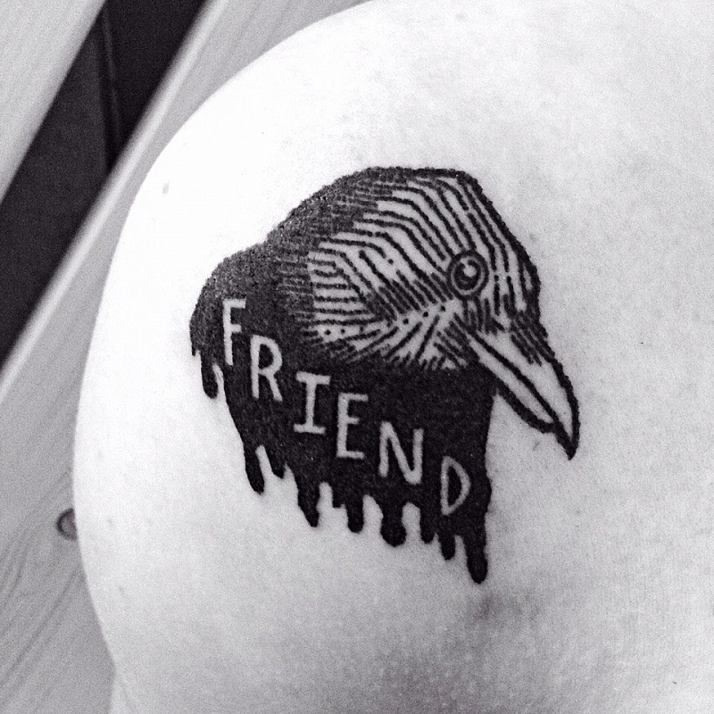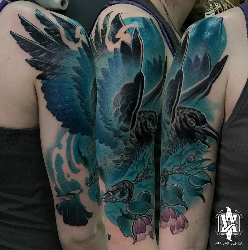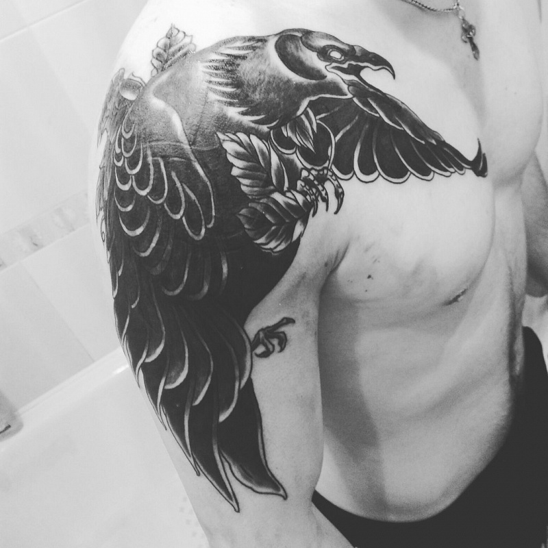 Tatouage corbeau sur l'épaule