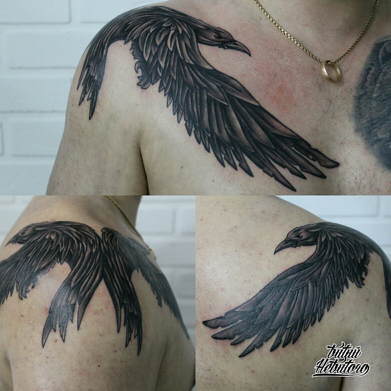 - Tatouage corbeau sur l'épaule