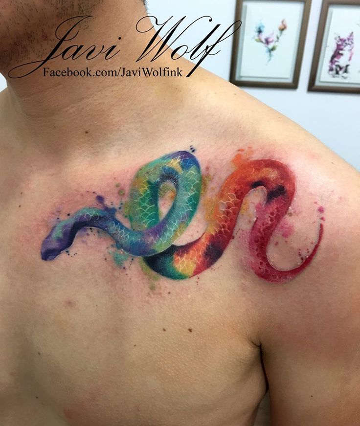 Dans un dessin pectoral de couleur en forme de serpent, le dessin de chaque échelle est plutôt impressionnant. La couleur du serpent est choisie par la personne qui veut voir une belle créature de sang froid sur son corps. Les serpents verts, dorés, gris, orange, rouges et bleus peuvent être réalisés en version monochrome et peuvent être représentés par des transitions dans toutes les couleurs de l'arc-en-ciel.