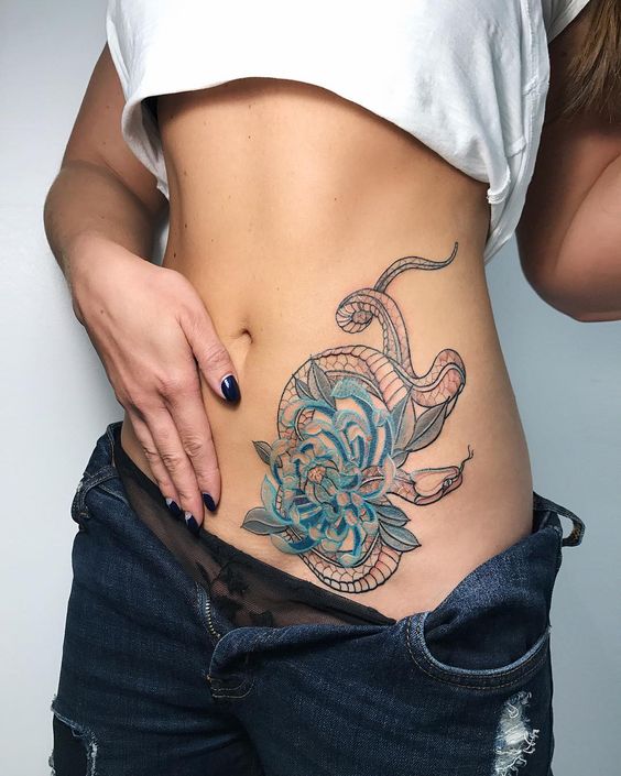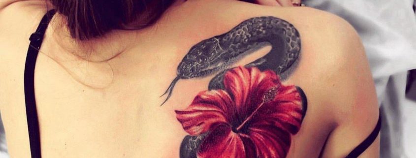Tatouages de serpents spectaculaires avec des fleurs
