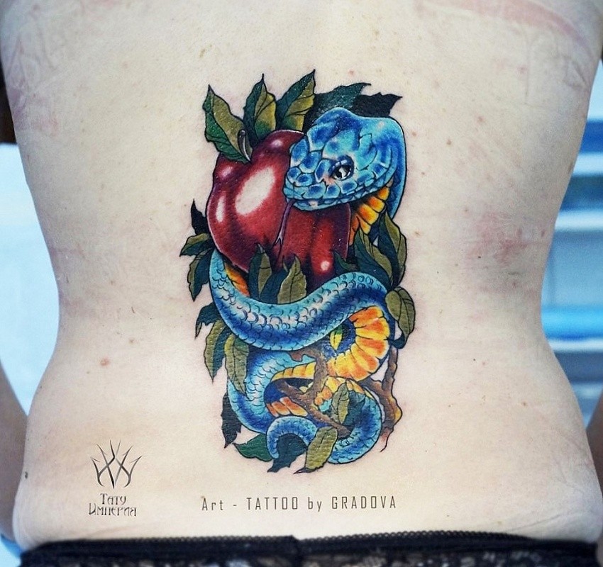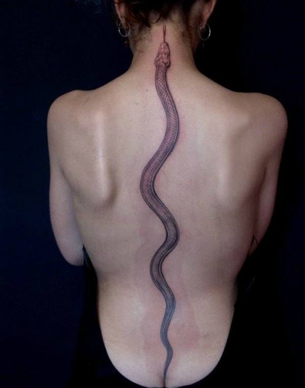 Si le tatouage d'un serpent sur son dos est fait sous la forme d'une créature qui rampe doucement, cela indique une sagesse et un calme acquis. Ces tatouages suscitent non seulement des émotions positives, mais peuvent même parfois inspirer la peur. Le tatouage de serpent sur le bas du dos des femmes indique un fort caractère, de la détermination et de la confiance en soi et pour demain.