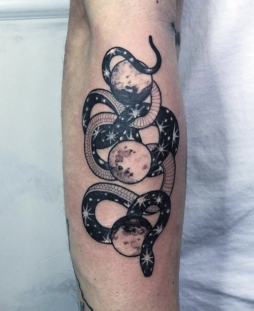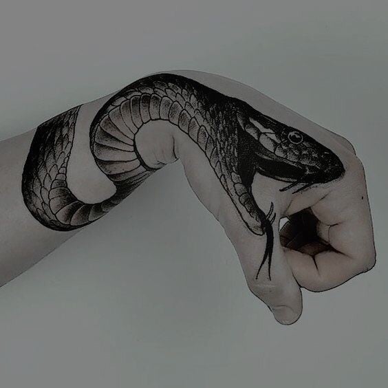 Le tatouage du serpent noir indique que son propriétaire a traversé un certain nombre de difficultés extrêmement difficiles, par exemple une maladie, mais a réussi à vaincre toutes les épreuves. Très souvent, un tatouage de serpent noir orne le bras et est réalisé dans un format minimaliste. Certains exemples de tatouages de serpent en noir semblent beaucoup plus réalistes qu'en couleur.