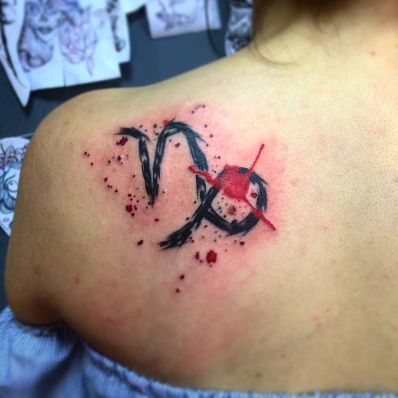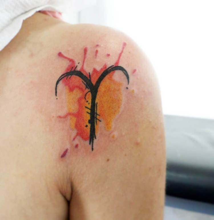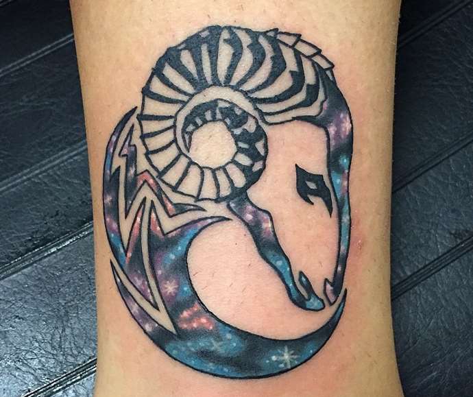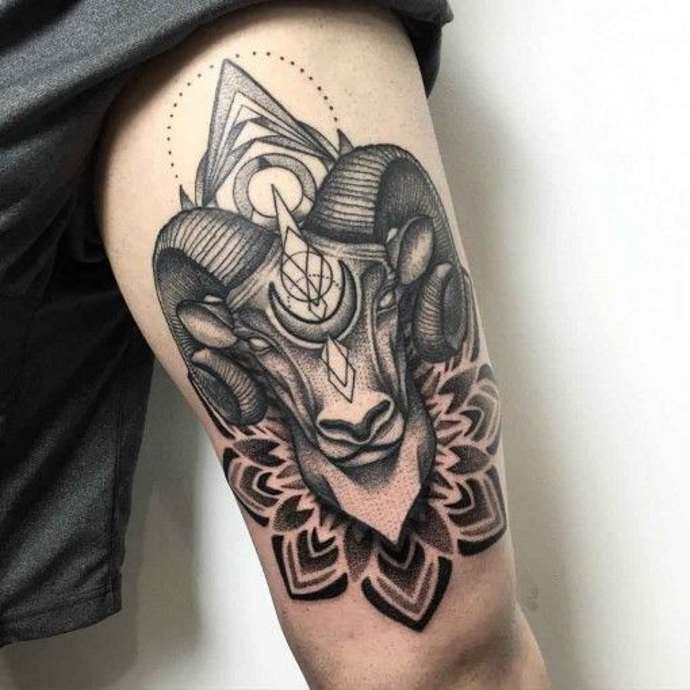 En ce qui concerne le tatouage avec le signe du Bélier, les hommes choisissent le plus souvent des dessins agressifs et volumineux. Parfois, le signe du zodiaque est ajouté à l'un des éléments d'un grand tatouage sur le dos ou le bras. Par conséquent, nous pouvons affirmer en toute sécurité que cette option ne convient que pour des personnes confiantes, de vrais leaders. À leur tour, les femmes choisissent un signe plus simple et laconique de leur signe du zodiaque. Le plus souvent, un tatouage de bélier est appliqué sur la poitrine, l'avant-bras ou le dos.