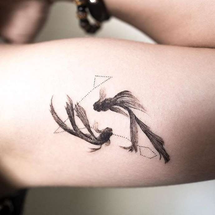 Un tatouage avec une photo d'un poisson est choisi par des personnes qui dans la vie manquent de confiance en elles. Mais les représentants du signe eux-mêmes ne sont pas en conflit, ils ont développé l'intuition.