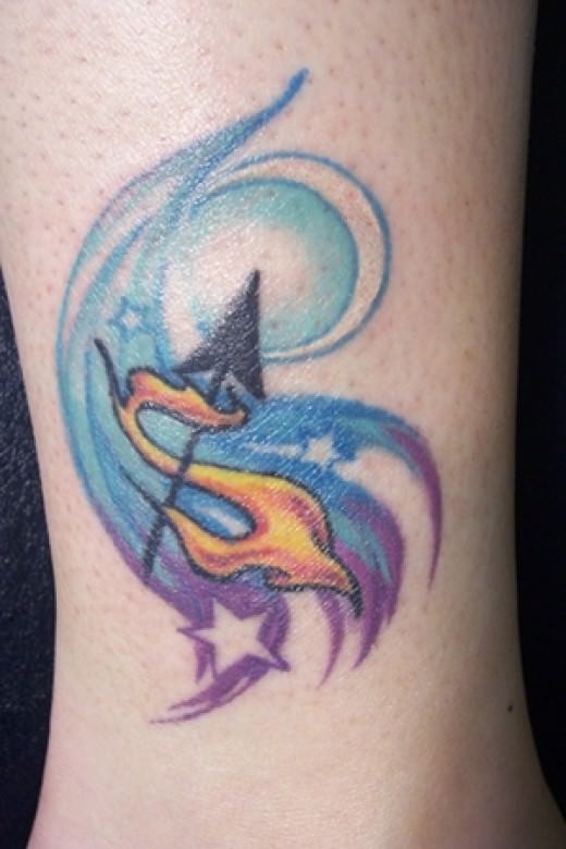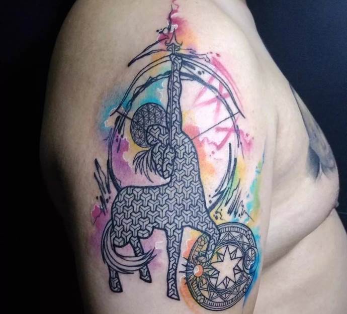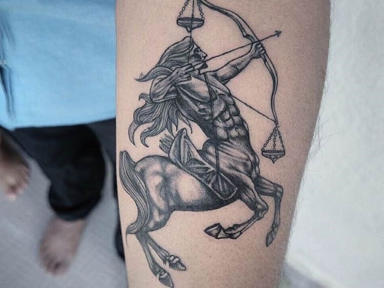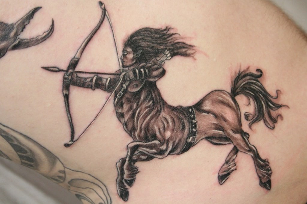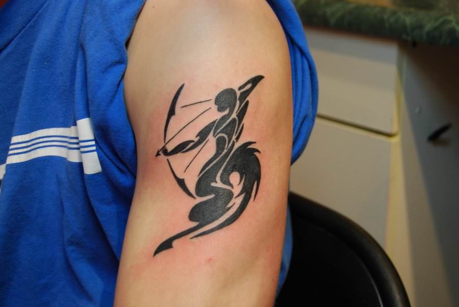 Très souvent, l'archer est représenté sur le corps comme un centaure tenant un arc dans ses mains. Il peut également s'agir d'un arc avec une flèche ou même d'une constellation de ce signe du zodiaque.