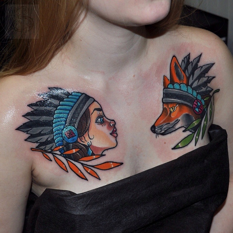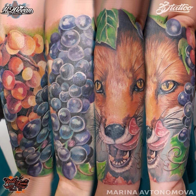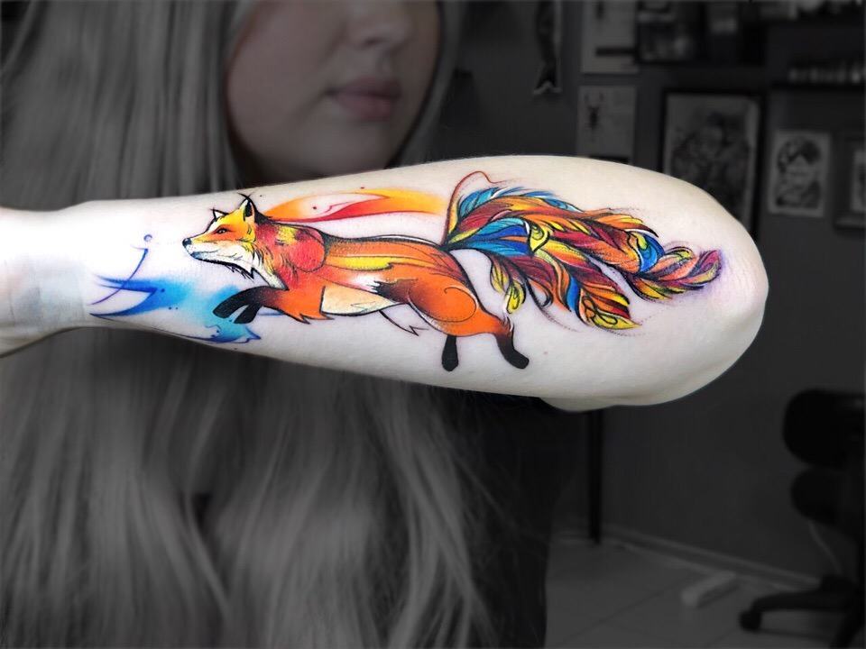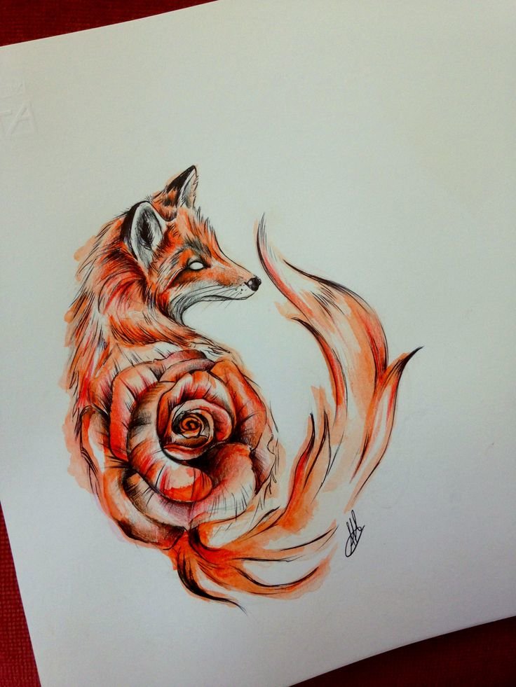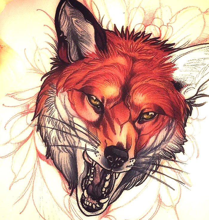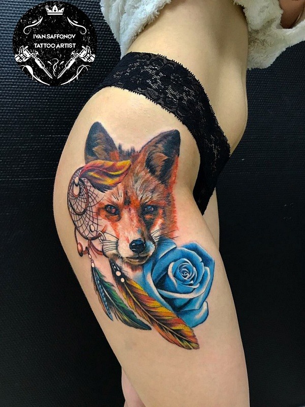 Le renard est l’animal le plus rusé et prudent. C'est une bête prédatrice difficile à attirer par un piège. De nombreux peuples chantent un animal sauvage dans leurs chansons et leurs légendes. Mais il y a aussi de telles nations qui n'aiment pas le tricheur rouge. Un tatouage avec un ornement de renard est populaire parmi le beau sexe. L'image du renard est réalisée dans une couleur traditionnelle (nuances de rouge vif). Un tatouage de ce format est le plus souvent appliqué pour décorer l'avant-bras, la partie inférieure de la jambe et les omoplates.
