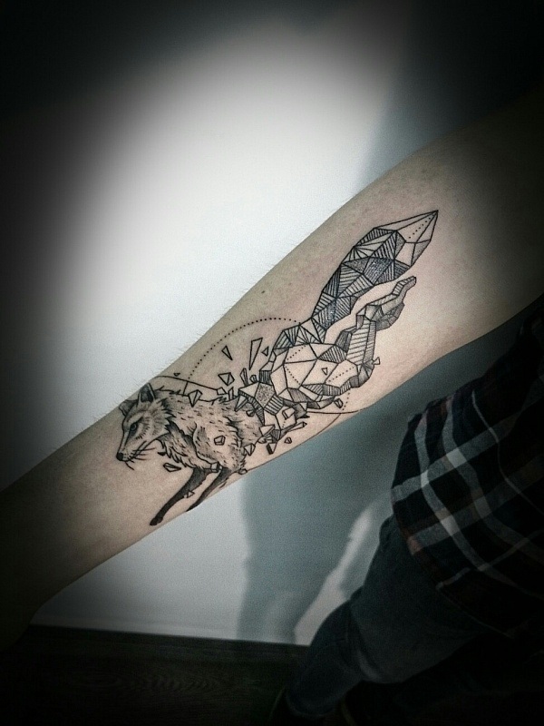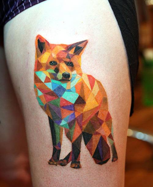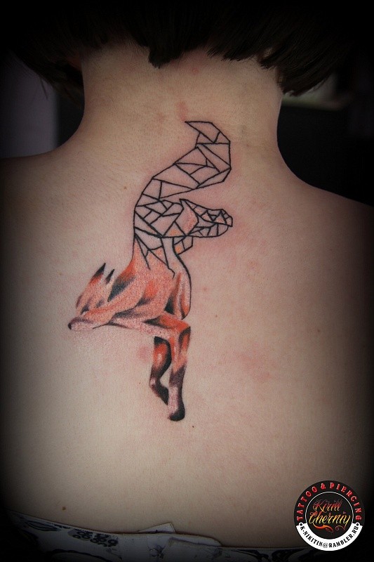 Ce style nous est connu par l'art du Japon. Tout le monde sait depuis longtemps que l'origami est la mise en œuvre de différentes figures à partir de papier ordinaire. C’est cette option que les tatoueurs ont décidé d’utiliser pour la fabrication de cet ornement. Les lignes pointues du dessin donnent au tatouage de renard un aspect plutôt intéressant et inhabituel.