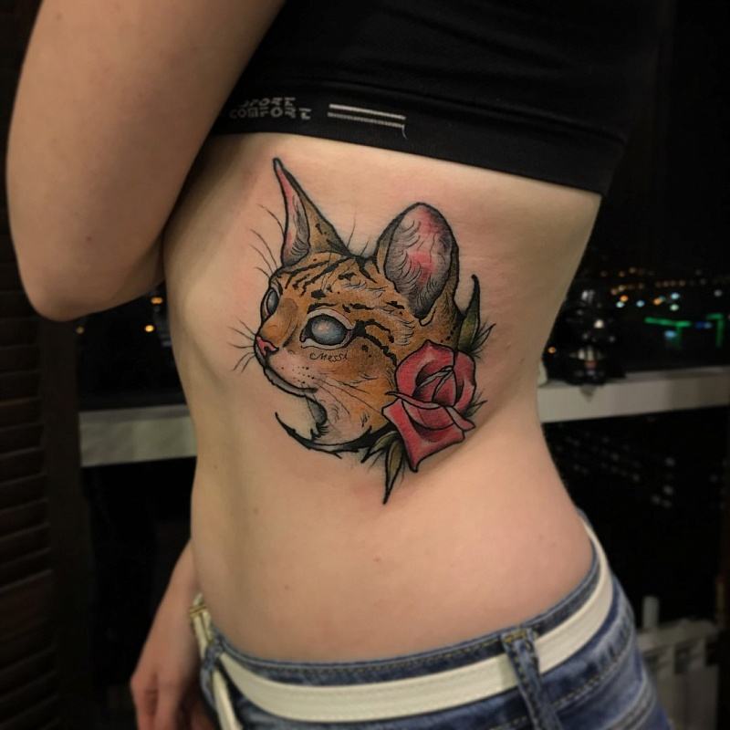 Le tatouage sur les côtes des filles est très populaire aujourd'hui, cela est particulièrement visible durant la saison estivale des plages. Le principal avantage d'un tel tatouage est la possibilité de le montrer au public ou, au contraire, de le cacher des regards indiscrets. Le motif pectoral sur les côtes soulignera parfaitement la beauté de la silhouette féminine et de la presse. C'est pourquoi le tatouage sur les côtes est souvent appliqué par les athlètes et les filles en forme au gymnase. Du côté féminin, un tatouage en forme d’inscription, de fleurs, d’oiseaux ou de plumes aura fière allure. L'inscription peut être courte, composée de plusieurs mots, ou volumineuse, contenant plusieurs phrases. De tels tatouages aujourd'hui peuvent souvent être trouvés dans les stars d'Hollywood. Les petits tatouages de cœur, de lune et de soleil, de roses ou de lis sont également très populaires auprès du beau sexe. L'image des animaux, par exemple des chats ou des lionnes, est belle et fascinante du côté féminin.Si une fille choisit un tatouage à l’image d’oiseaux, cela en dit long sur la légèreté de son caractère et sur une certaine légèreté de la nature.