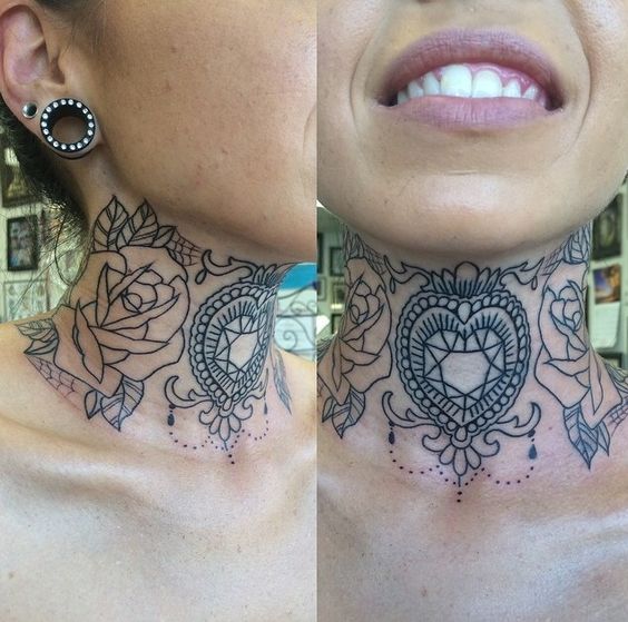 Le désir d'utiliser un tatouage sur le cou est principalement observé chez les jeunes. La partie la plus ouverte et la plus visible du corps est le cou, elle est donc souvent choisie pour cette procédure. Les filles sont très disposées, et les gars se font souvent tatouer dans cette zone. La différence est que chacun de nous a son propre monde intérieur et ses désirs les plus profonds, ce qui se reflète souvent dans les dessins de tatouage. Il arrive que les personnes qui décident de se faire tatouer fassent l'objet de différentes critiques et ce processus peut être sans fin. Quoi qu'il en soit, un dessin spectaculaire, comme une œuvre d'art, a la capacité de captiver et de riveter nos yeux.
