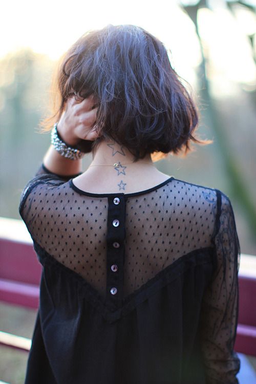 Pourquoi les filles choisissent de plus en plus un endroit sur leur cou pour un tatouage? La réponse est assez simple, car outre la beauté du dessin, il est pratique et pratique. Si vous perdez vos cheveux, le tatouage est masqué, mais si vous voulez vraiment vous vanter, les tresses sont rassemblées en un chignon. Avant de décider d'appliquer un tatouage, la jeune fille détermine la couleur dans laquelle elle veut un croquis d'art et le maître peut corriger le désir du client-client. En cas de problème, il donnera un conseil compétent, basé sur son expérience ou approuvera le client dans le bon choix de la commande. Selon les statistiques, dans la majorité des cas, les filles ont des dessins de la même couleur (monochrome) sur le cou. De nombreux maîtres en parlent, car une telle procédure est compliquée à cause de la flexion du cou.Dans cette zone, la peau est très fine et il n’est pas toujours possible de représenter le motif souhaité avec une précision artistique, car le mascara peut fuir et après un certain temps, la distorsion de l’esquisse sera «sur le visage». Par conséquent, les tatouages monochromes (noir et blanc) restent une priorité. Ce choix est conseillé, mais il n’est pas nécessaire de refuser les tatouages de couleur. Diverses couleurs riches semblent à la mode et colorées, et la phrase en latin donne un "souffle de fraîcheur" à un tatouage appliqué sur le cou de la fille.