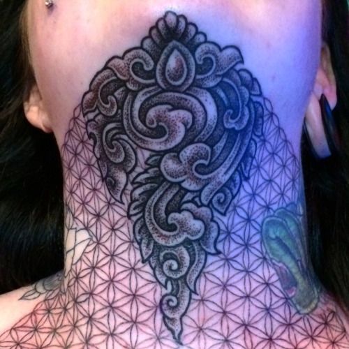 Il est facile et difficile de choisir un tatouage en même temps, par exemple, comme si vous alliez acheter un article absolument ordinaire dans un magasin, par exemple, un jean, vous allez le regarder, tout est comme d’habitude, rien de compliqué, mais imaginez un instant qu’ils vous serviront toute votre vie. et ils ne peuvent pas être essayés. Vous les achetez et vous les porterez à la fois chez les jeunes et chez les personnes âgées. La tâche est un peu plus compliquée: que se passe-t-il s’ils restent absurdement sur vous, puis ils se détériorent rapidement et vous devez porter ces chiffons toute votre vie ... Eh bien, vous comprenez, la comparaison est un peu originale, mais elle est claire et évidente pour tout le monde. Par conséquent, si votre choix s’applique à un tatouage sur le cou, c’est alors le seul endroit où l’image sera visible dans tous les sens - est acceptable. Mais vous devez prendre en compte le fait que le tatouage qui vous a captivé avec une autre personne n'est pas un fait qui aura aussi fière allure sur votre corps, car cela dépend de nombreuses circonstances, par exemple de la condition physique du corps. Néanmoins, le tatouage le plus populaire et le plus créatif est considéré comme un tatouage qui commence sur la partie inférieure de la nuque et se termine sur la région cervicale.