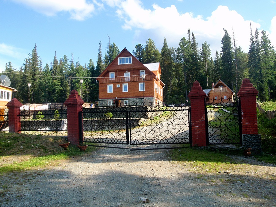 La base est située dans un endroit fabuleusement magnifique sur la côte du lac Teletskoïe. Vous pouvez vous rendre au complexe touristique uniquement par voie d'eau à partir des villages de Yogach ou d'Artybash, de sorte que la nature est épargnée par la civilisation.Les touristes actifs peuvent aller pêcher, jouer au badminton, au tennis ou au billard, faire une excursion en bateau sur le lac ou se rendre aux cascades pittoresques.