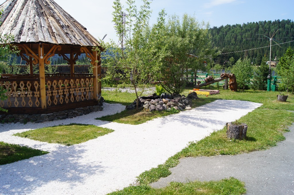 Le complexe est situé dans un endroit pittoresque sur la côte du lac Teletskoïe. Ceux qui préfèrent passer du temps activement se voient proposer de jouer au tennis, au volley-ball, au badminton, à faire de l'équitation, du rafting ou de visiter l'une des excursions présentées. Ceux qui préfèrent des vacances reposantes peuvent faire du bateau sur le lac. Il y a une aire de jeux et un mini club pour les enfants à la base.