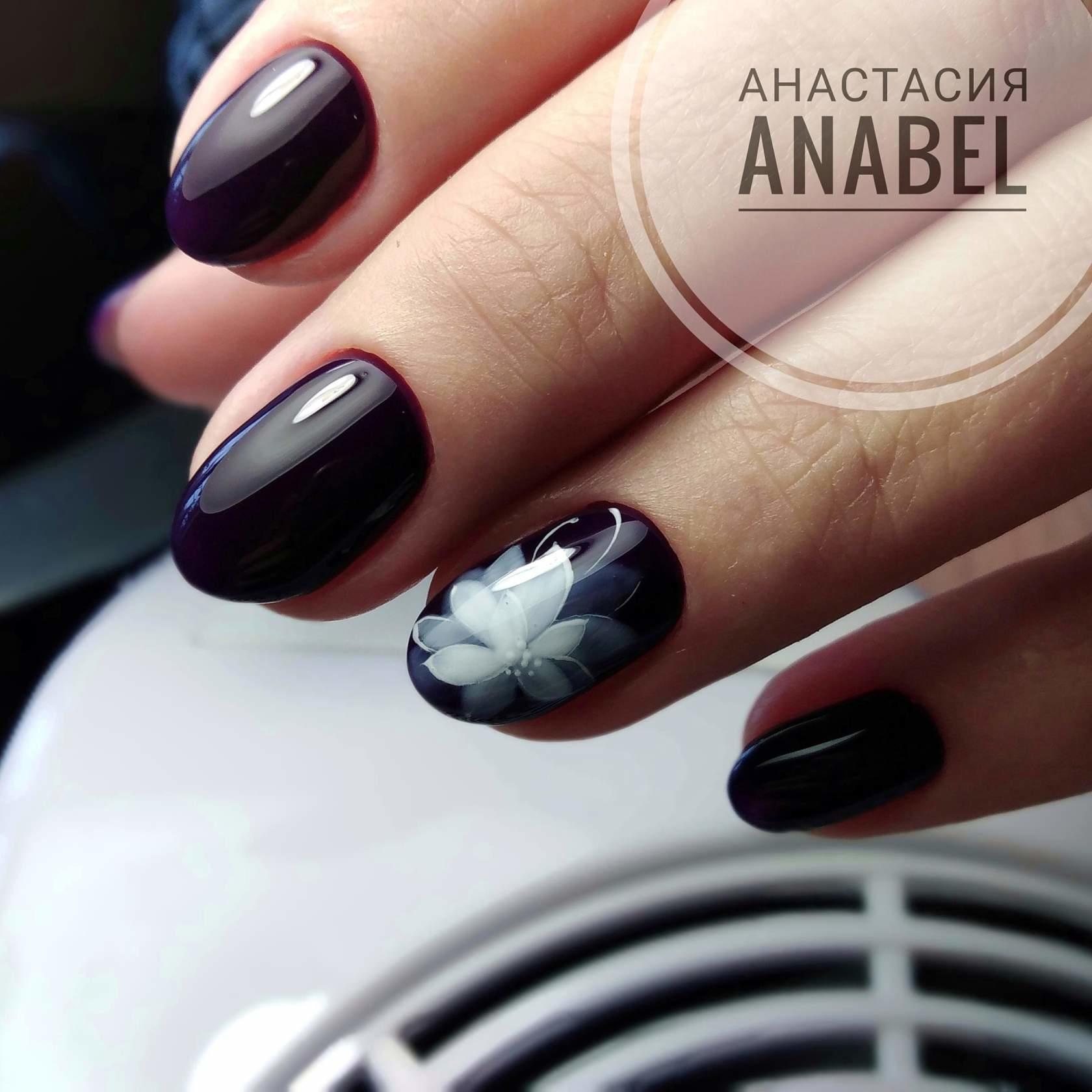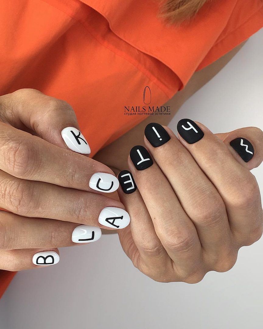 La tendance la plus en vogue de cette saison en matière de manucure noire est celle des dessins sur le pouce, qui créent un accent mignon et diluent les nuances profondes.