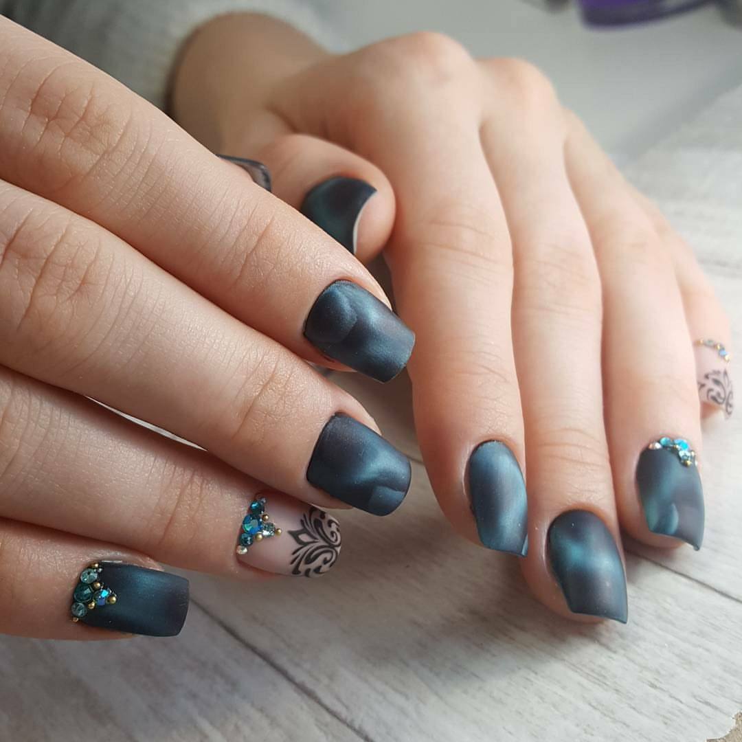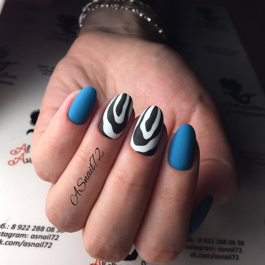 La manucure de couleur bleue convient aux femmes élégantes à la peau claire et aux jeunes femmes à la peau foncée. Le noble bleu foncé a fière allure tant en finition brillante qu'en finition mate, en technique de dégradé et en duo avec décor. Blue Manicure est approprié en toute saison et peut compléter votre noblesse avec n’importe laquelle de vos images.