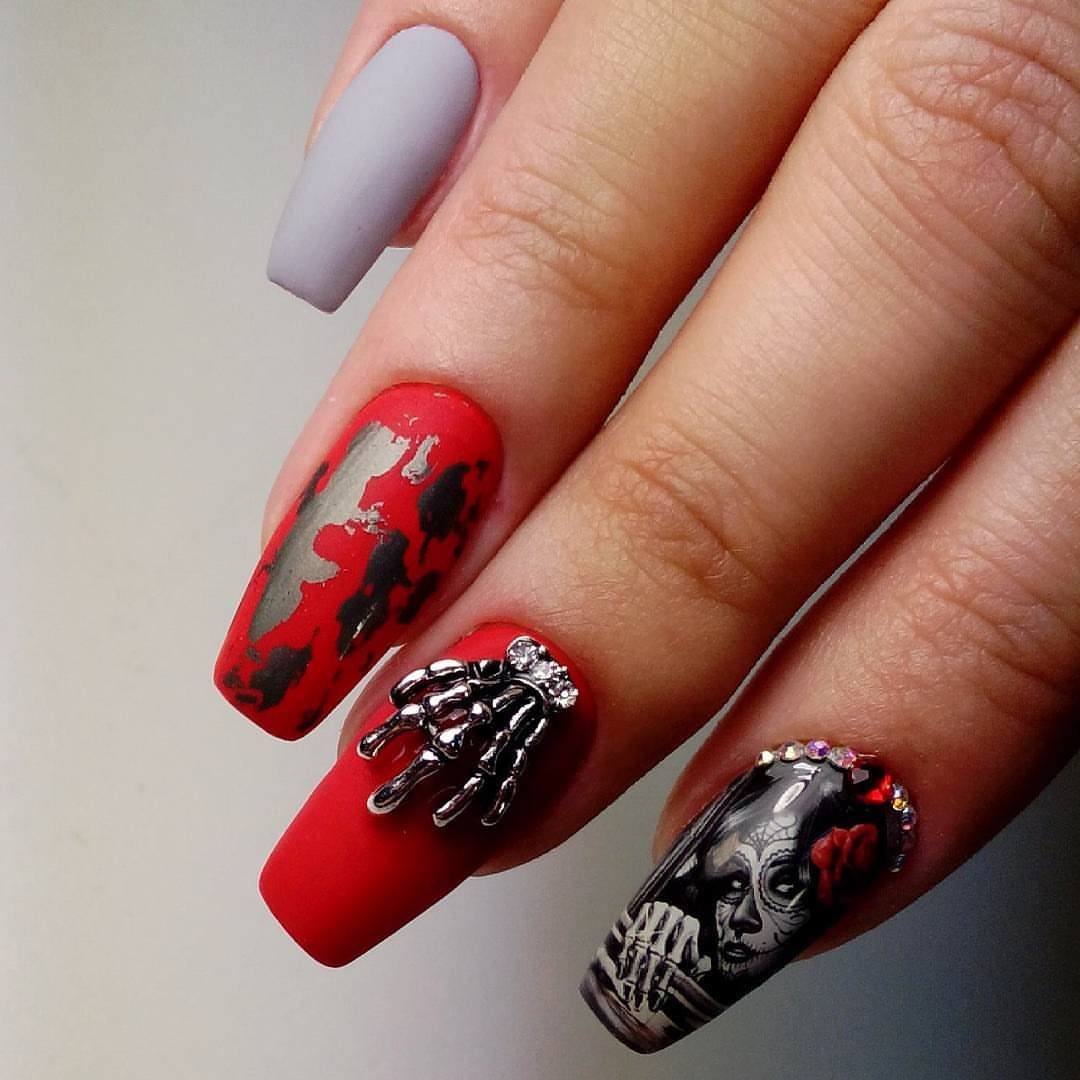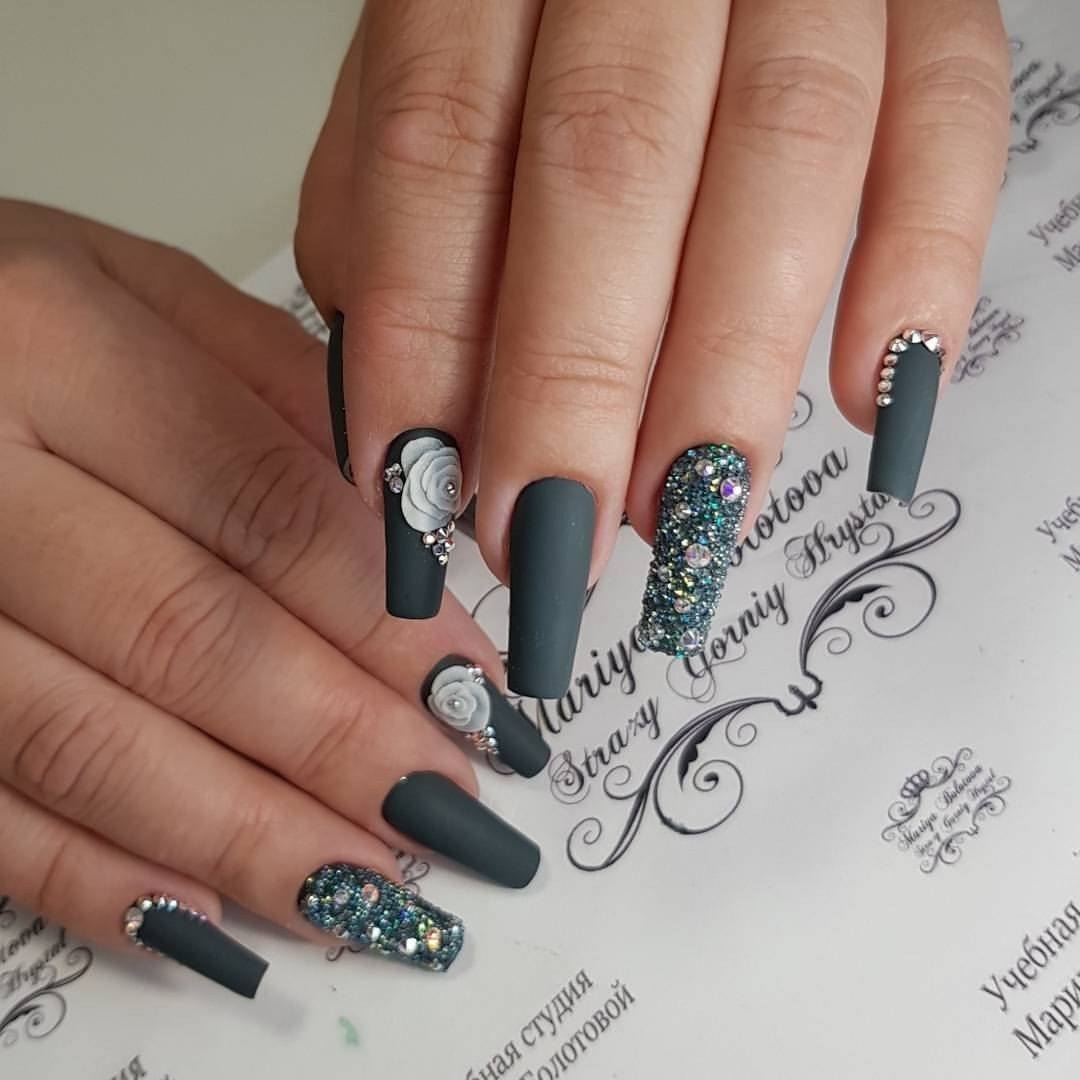 En 2026, les stylistes recommandent de choisir une combinaison simultanée de plusieurs structures et nuances dans une manucure sombre pour les ongles longs. Il sera très à la mode de combiner de près le ton choisi et les teintes opposées, les strass, les perles, les paillettes et les dessins fantastiques. Cela arrondira visuellement les ongles et les rendra plus attrayants.