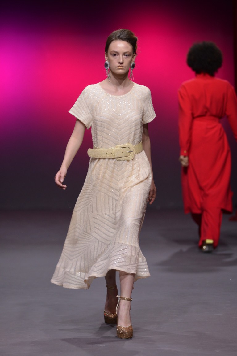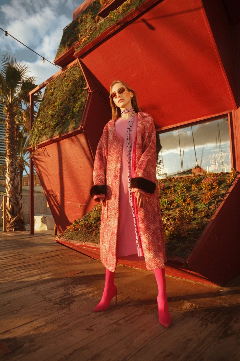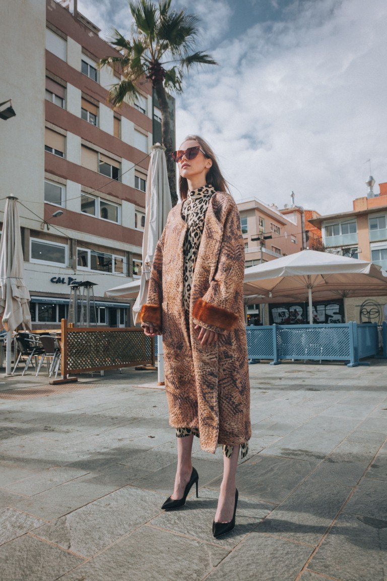 - différentes textures de tissu sont combinées, par exemple, une robe fluide légère et un manteau de fourrure;