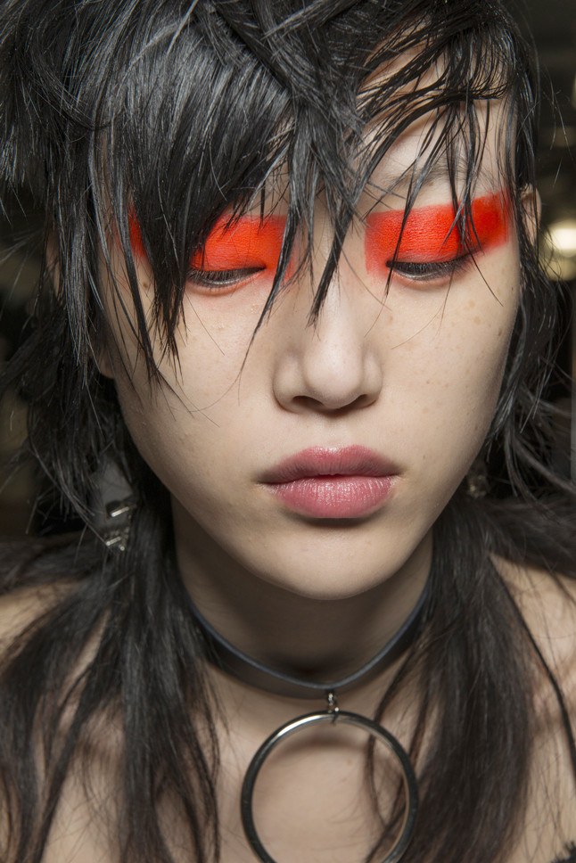 Avez-vous déjà voulu un arc-en-ciel sous vos yeux? Tout est possible cette année. Ce sera un immense bonheur pour les femmes qui aiment les couleurs vives et les expériences avec leur apparence. Voulez-vous combiner toute la palette avec l'acide nucléique et les tons pastel des yeux à la fois? Bienvenue seulement! C'est exactement ce qu'a fait l'artiste maquilleur Tom Pescho lors du spectacle d'Oskar De La Renta. Si vous avez une envie féroce de tester cette tendance sur votre visage, rappelez-vous: beaucoup d'emphase sur le visage est un buste, un seul suffit.
