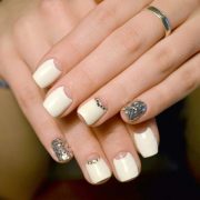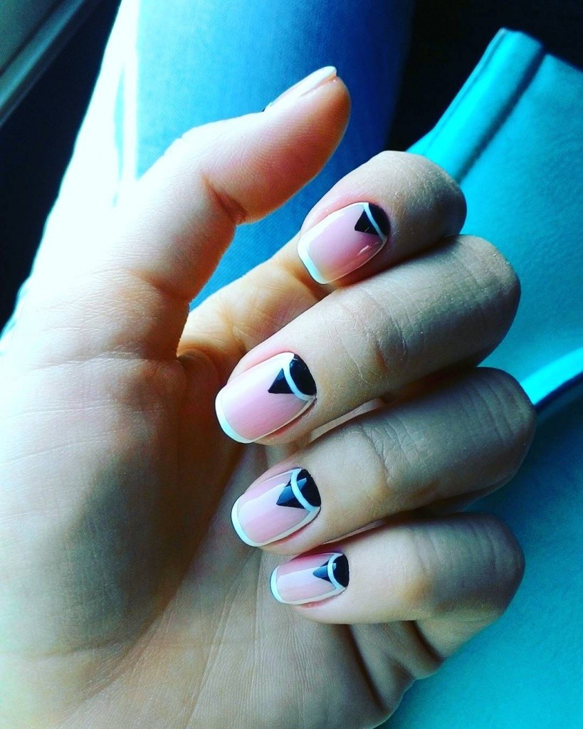 - Manucure lune triangulaire avec décor