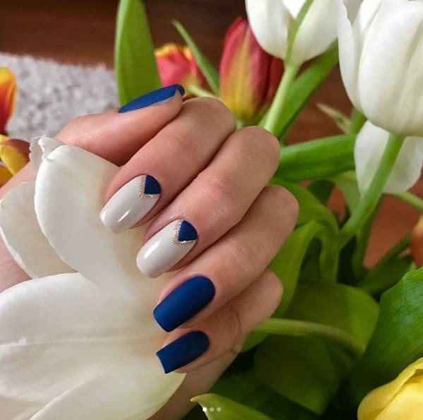 Les trous triangulaires sont souvent recouverts d'une nuance de vernis contrastante. Grâce à cette approche, le design est plus vif, visible et accrocheur. Cela est particulièrement vrai pour la saison estivale, quand tout le monde veut absolument expérimenter et essayer quelque chose de nouveau. La combinaison la plus pertinente est la manucure en noir et blanc, en noir et rouge ou en rouge et blanc. Ces nuances ont l'air parfait dans un design. Par conséquent, si vous préférez un classique sobre, il est préférable de regarder cette décision.