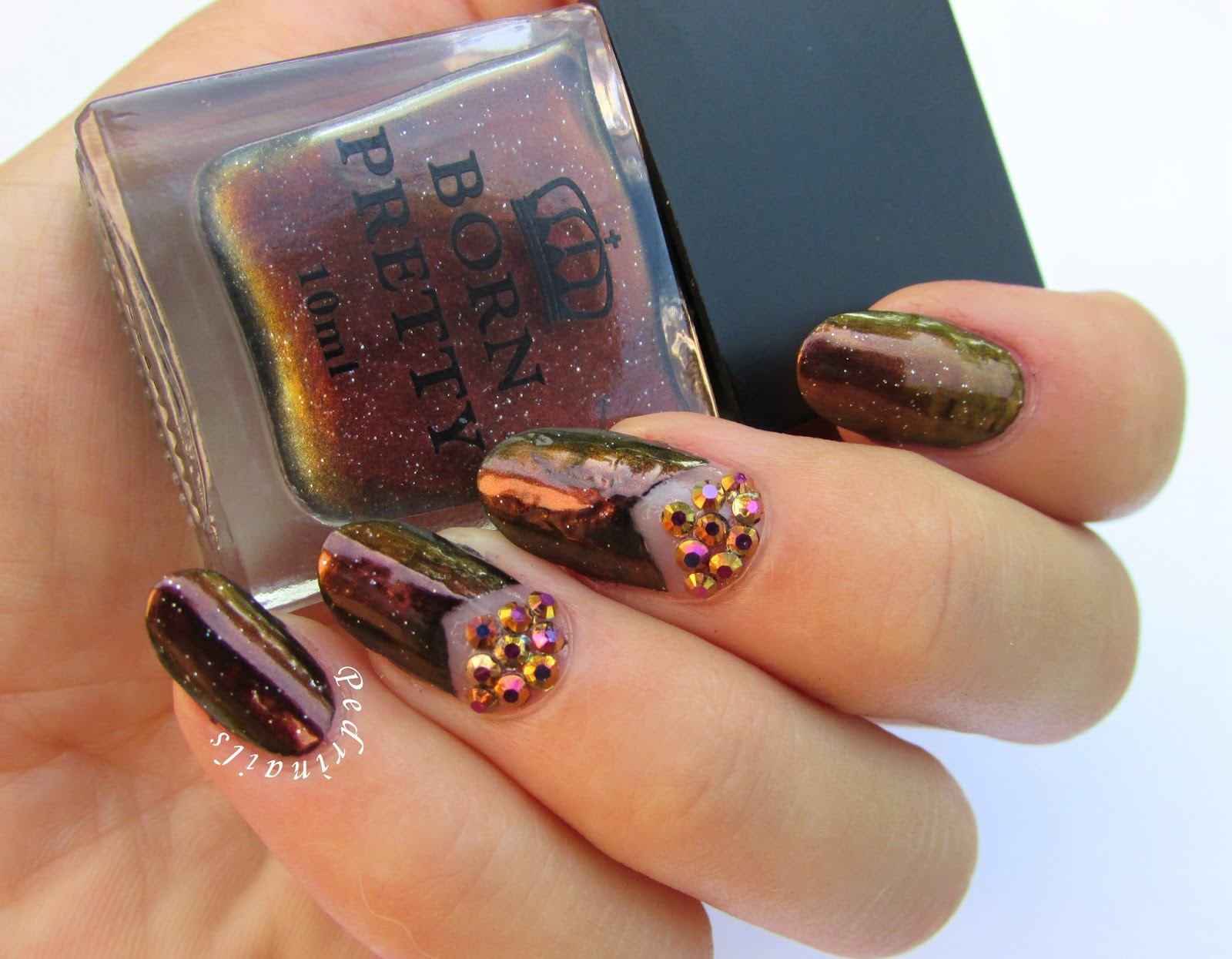 Le décor le plus populaire, bien sûr, sont les strass. Dans ce cas, ils peuvent être utilisés pour séparer le trou non peint. Si vous le souhaitez, la partie intérieure peut être remplie d'une image ou directement avec le décor lui-même. Tout dépend de la façon dont vous souhaitez effectuer une manucure brillante et entraînante.