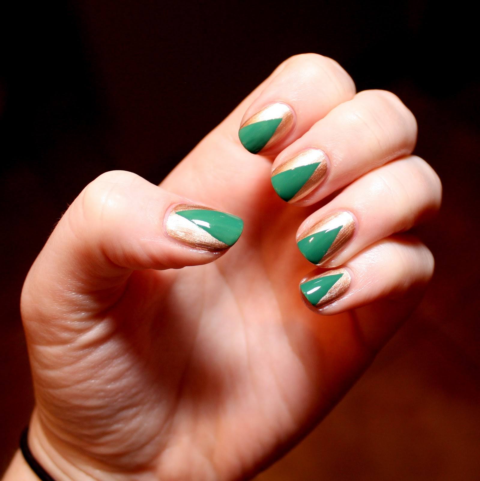 Des teintes sombres de vernis sont au moins utilisées dans la conception des ongles. Il s’agit principalement de brun, chocolat, gris, bleu, émeraude et noir. Chacune d'elles a fière allure non seulement en tant que revêtement principal, mais également en mettant l'accent sur une manucure triangulaire. L'option la plus appropriée serait une soirée, un événement ou une fête.