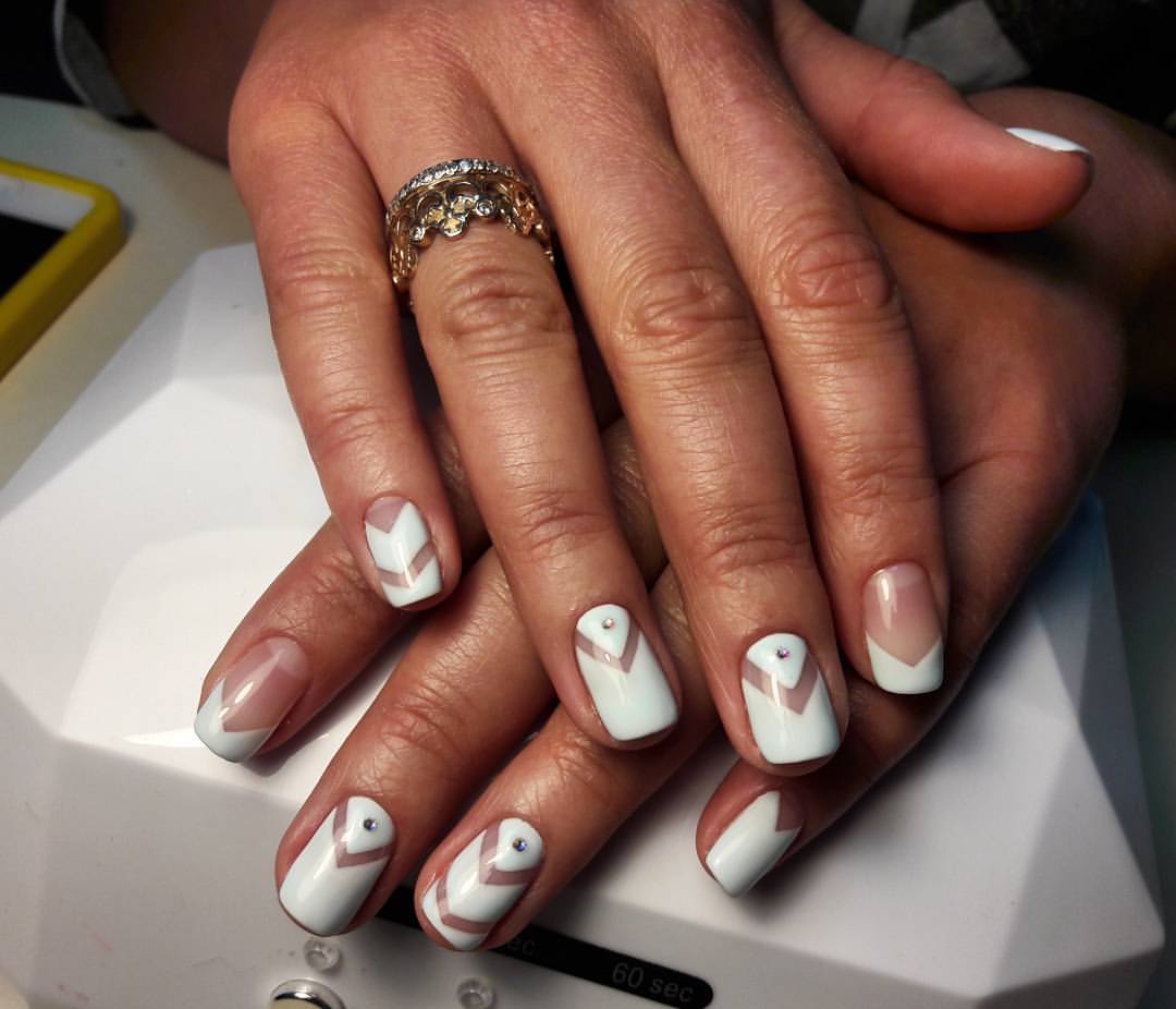 Manucure lune triangulaire avec décor