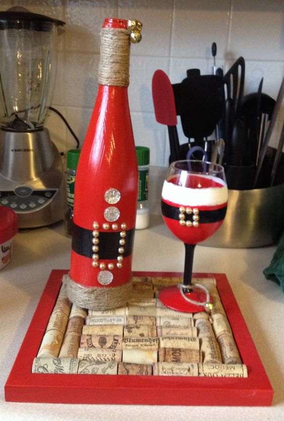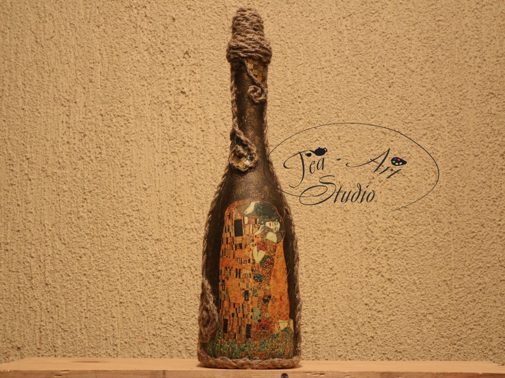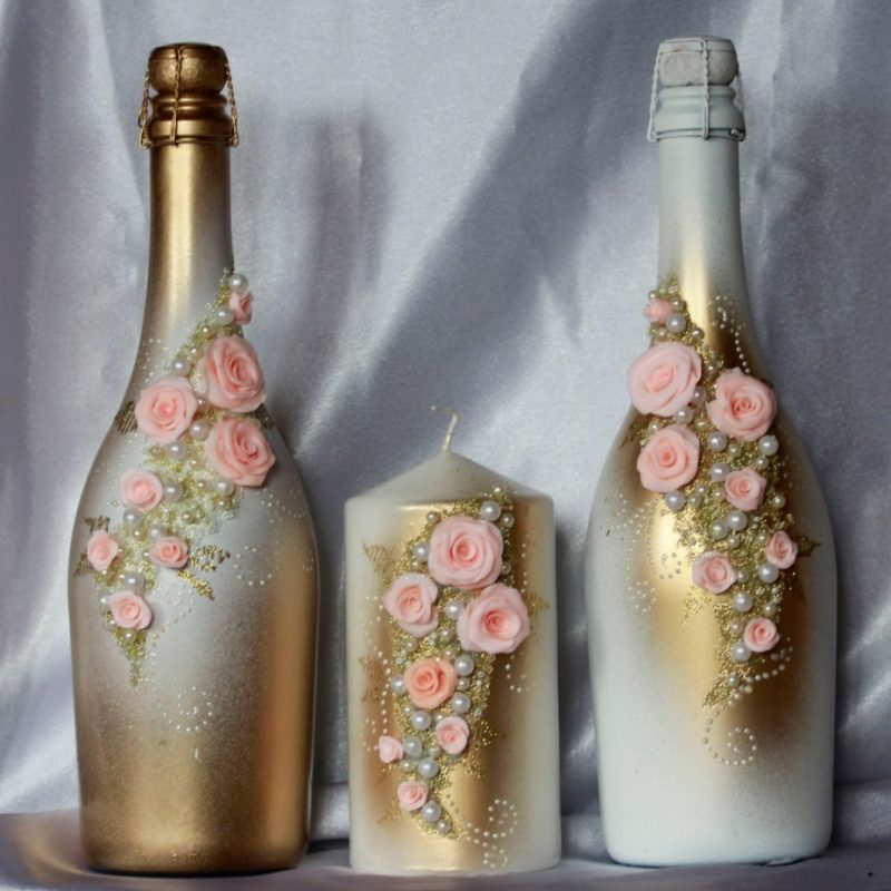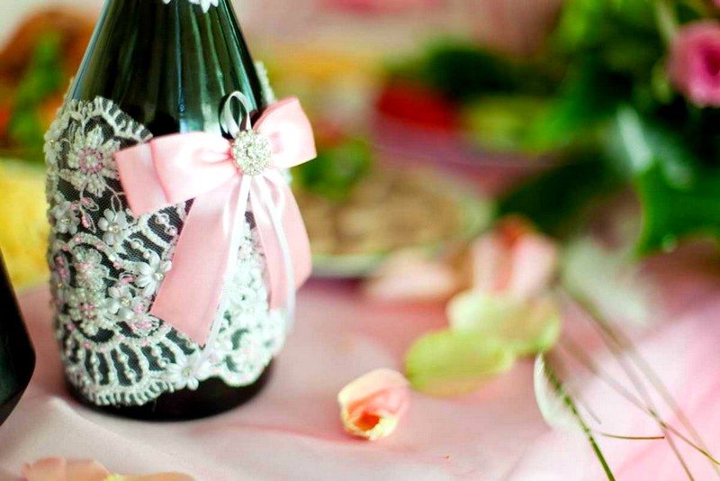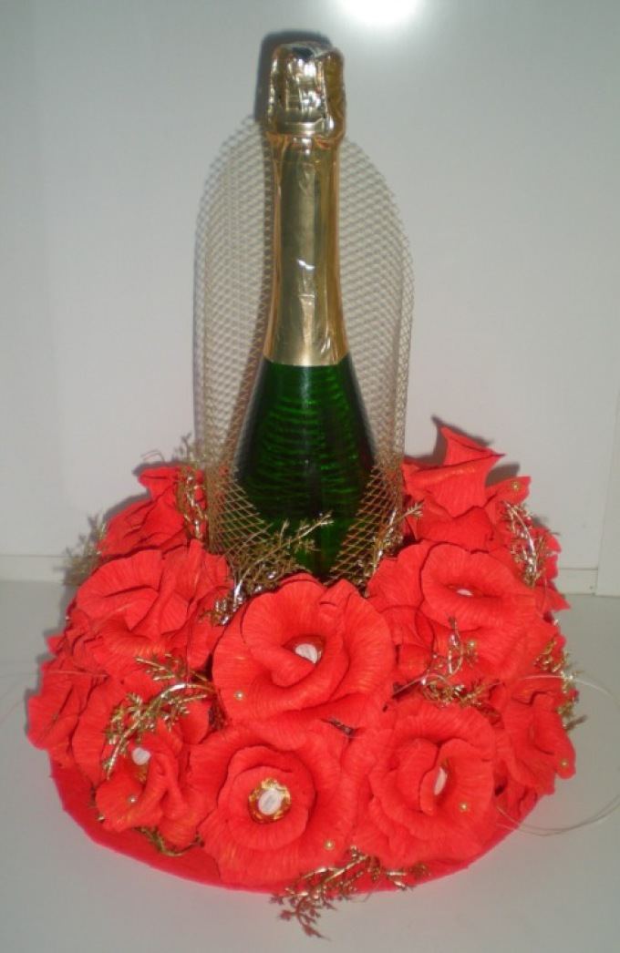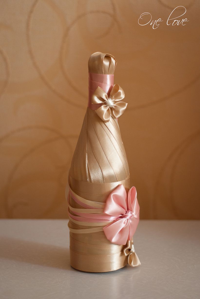 Il est intéressant de décorer une bouteille de champagne avec le pouvoir de chaque femme. Le processus prend un peu de temps, mais quel plaisir! Tous les efforts seront appréciés! Veillez à utiliser les symboles, les couleurs et les éléments du Nouvel An associés aux vacances pour la décoration du Nouvel An. Rubans de satin et de soie aux couleurs thématiques: rouge, vert, blanc, argent et or sont nobles et élégants sur une bouteille avec une boisson au champagne.
