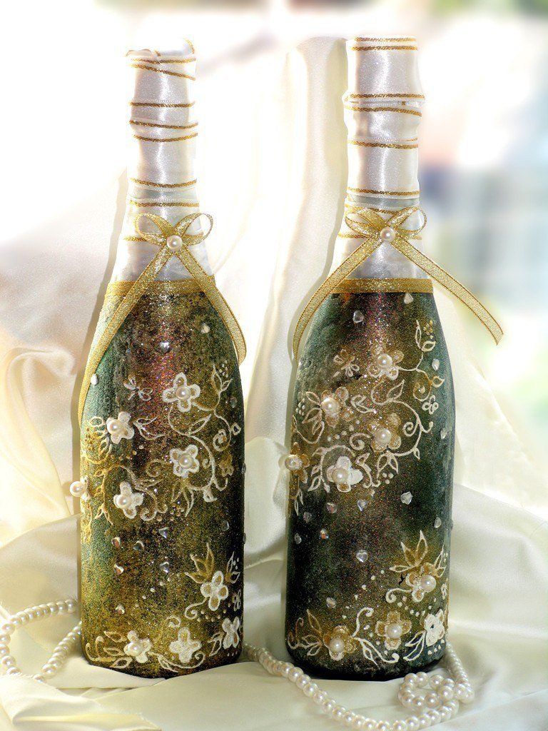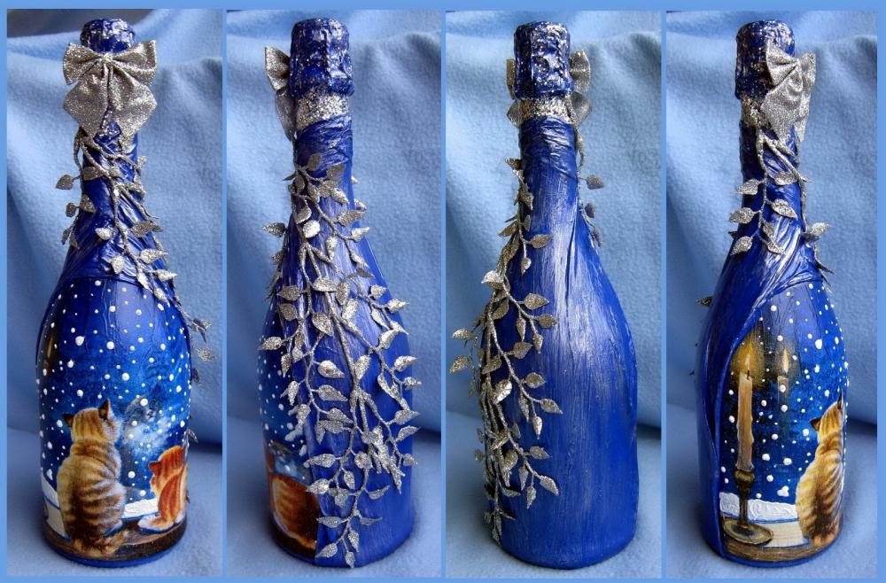 Alors, comment faire une belle bouteille de vin mousseux pour le Nouvel An? Aujourd'hui, nous avons essayé de répondre à la question, même si, franchement, la conception elle-même nécessitera des efforts et du temps. Si vous êtes satisfait du look ennuyeux habituel d'une bouteille de champagne sur la table, personne ne vous obligera à faire des efforts sans précédent pour son design pompeux. Bien sûr, il est plus facile d’emprunter le chemin de la moindre résistance et de tout laisser tel quel. Mais si vous souhaitez ajouter de la personnalité à la décoration de la table pour le Nouvel An, vous pouvez utiliser différentes méthodes éprouvées pour décorer de manière élégante et efficace une bouteille de vin de champagne.