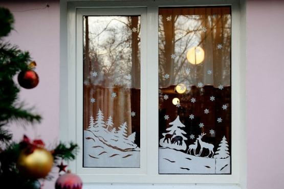 Aujourd’hui, il est déjà démodé de suspendre des fenêtres en verre avec tout un arsenal de flocons de papier faits maison. Ce sont déjà des vestiges du passé. Un beau dessin magique fait à travers un pochoir ou des guirlandes électriques au néon est élégant et de bon goût. Non seulement les décorations de sapin de Noël aux fenêtres, mais aussi les charmantes figurines d’origami suspendues à un fil ont un aspect assez original, unique et enchanteur.
