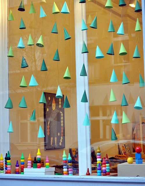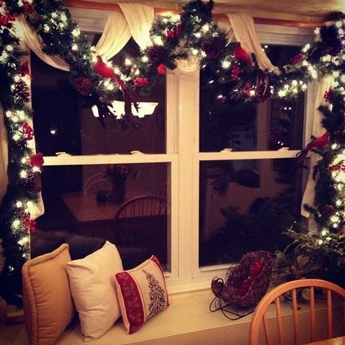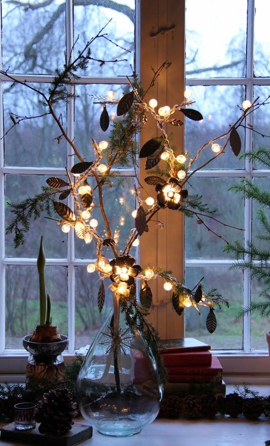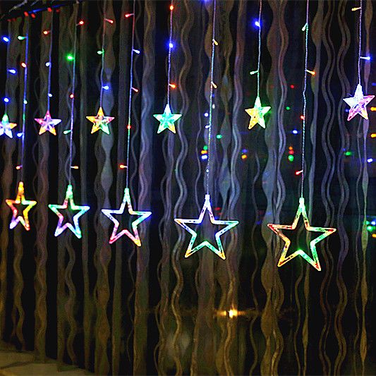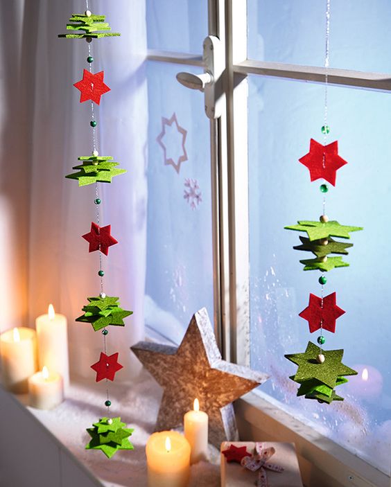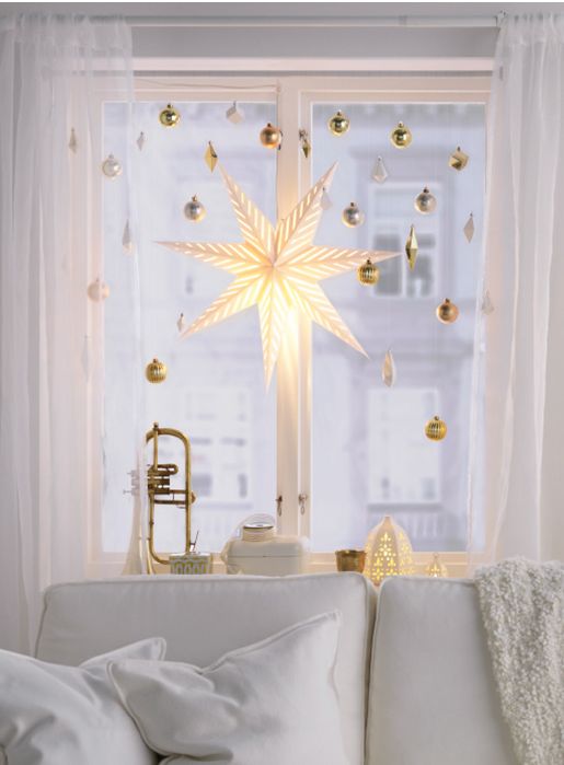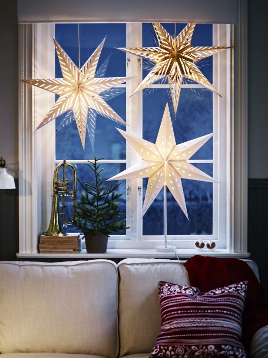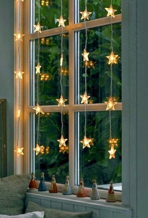 À propos, il n'est pas du tout nécessaire d'acquérir des lumières classiques. Jetez un coup d'œil à d'autres formes plus intéressantes. Par exemple, des étoiles ou de petits arbres de Noël sous la forme d'une guirlande sont d'une beauté incroyable. Ils peuvent être suspendus au-dessus de la fenêtre, créant ainsi une imitation du rideau.
