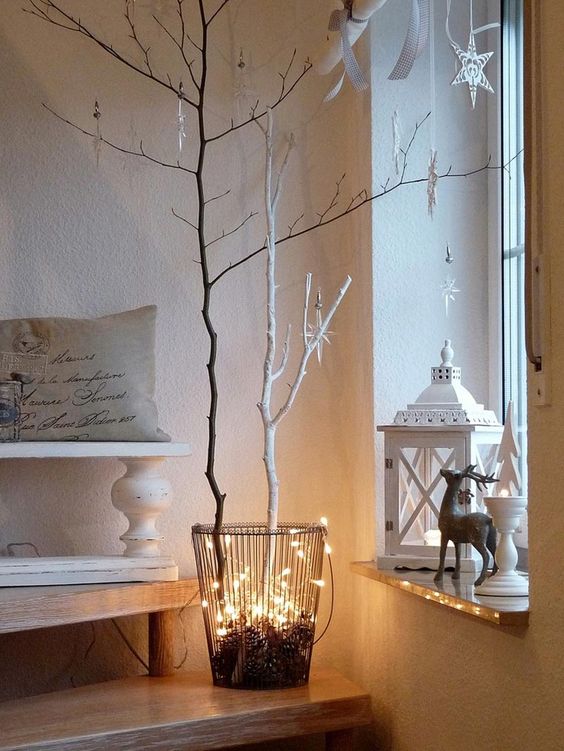 Si vous le souhaitez, vous pouvez compléter le décor avec une guirlande, des jouets de Noël. Pas moins élégant avec des petites tasses à thé et un vase avec des biscuits.