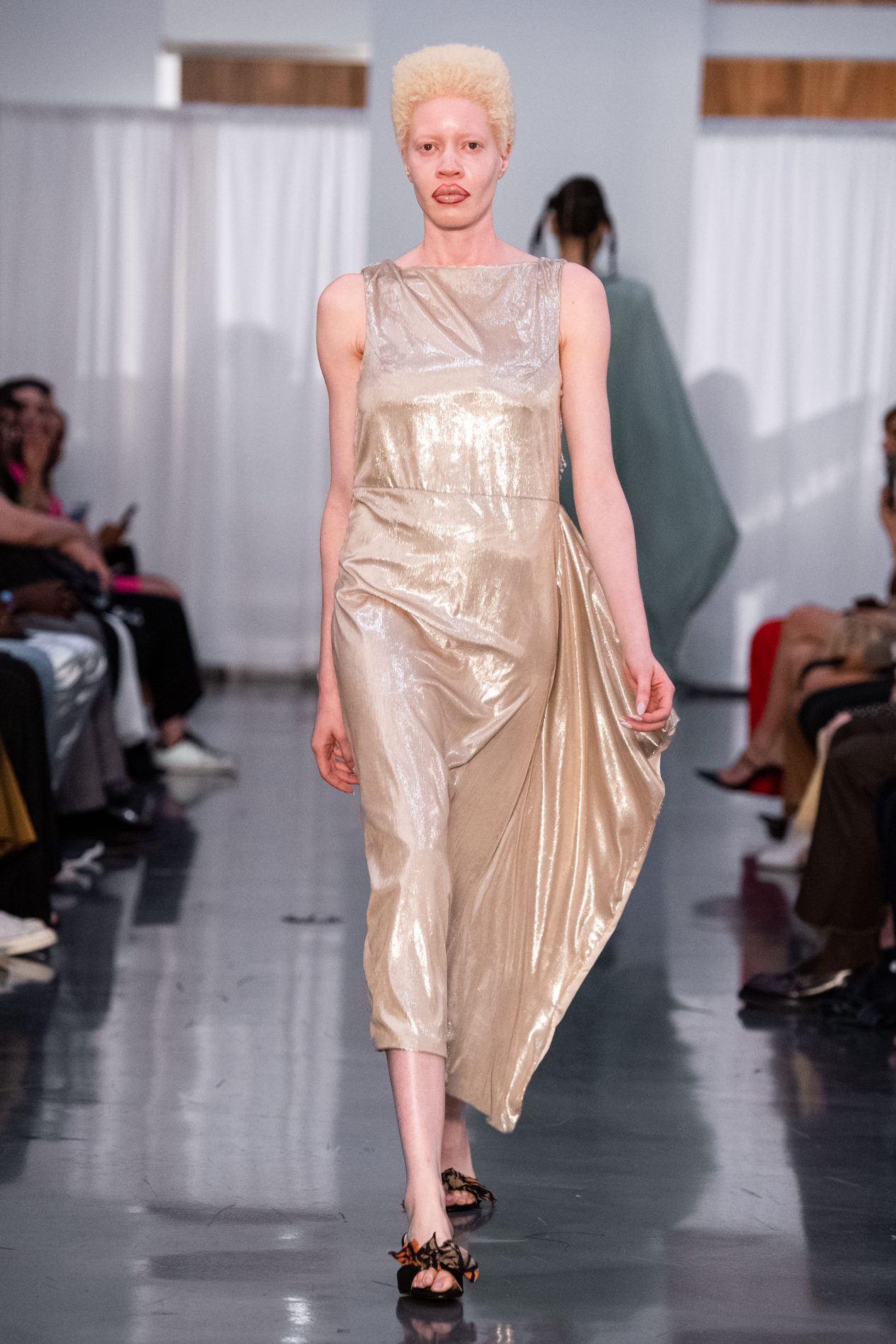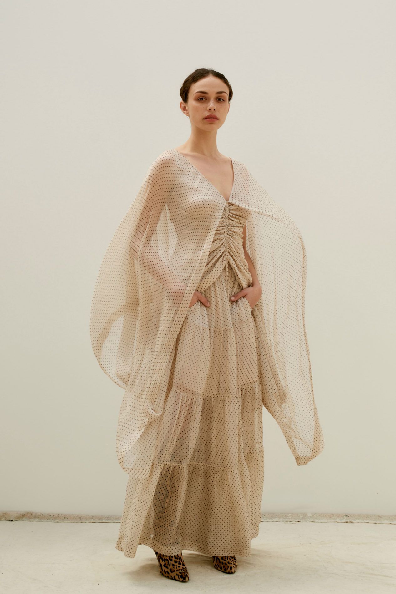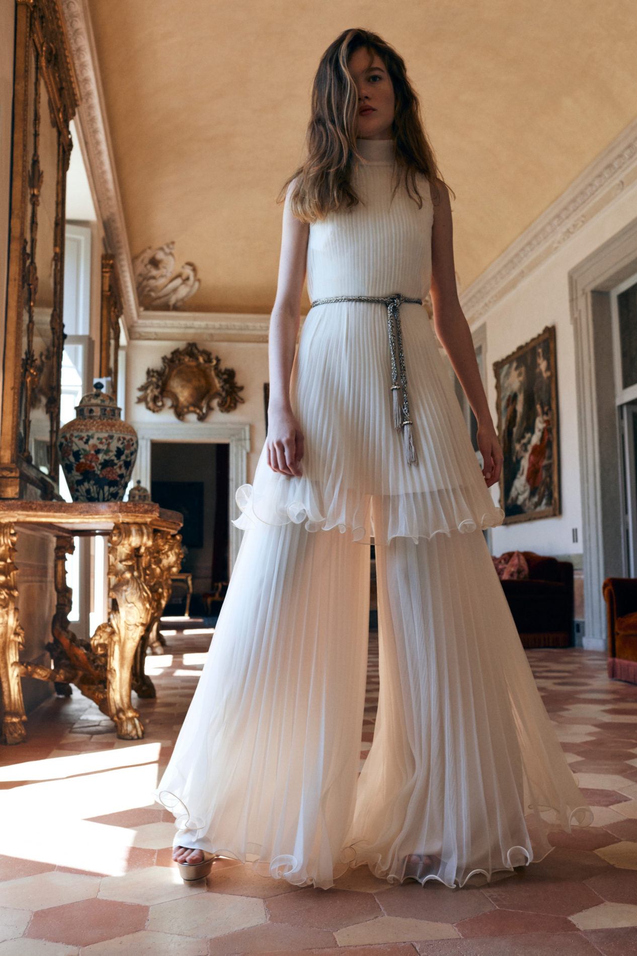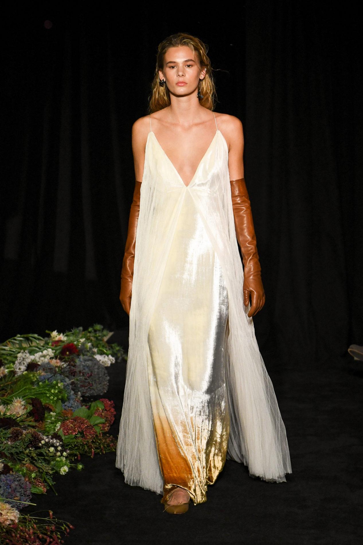 Pour les cancers, tout est très simple. Tenues romantiques dans des tons métalliques ou crème, dans lesquelles on peut se sentir calme et à l'aise, avec une enveloppe sur les épaules.