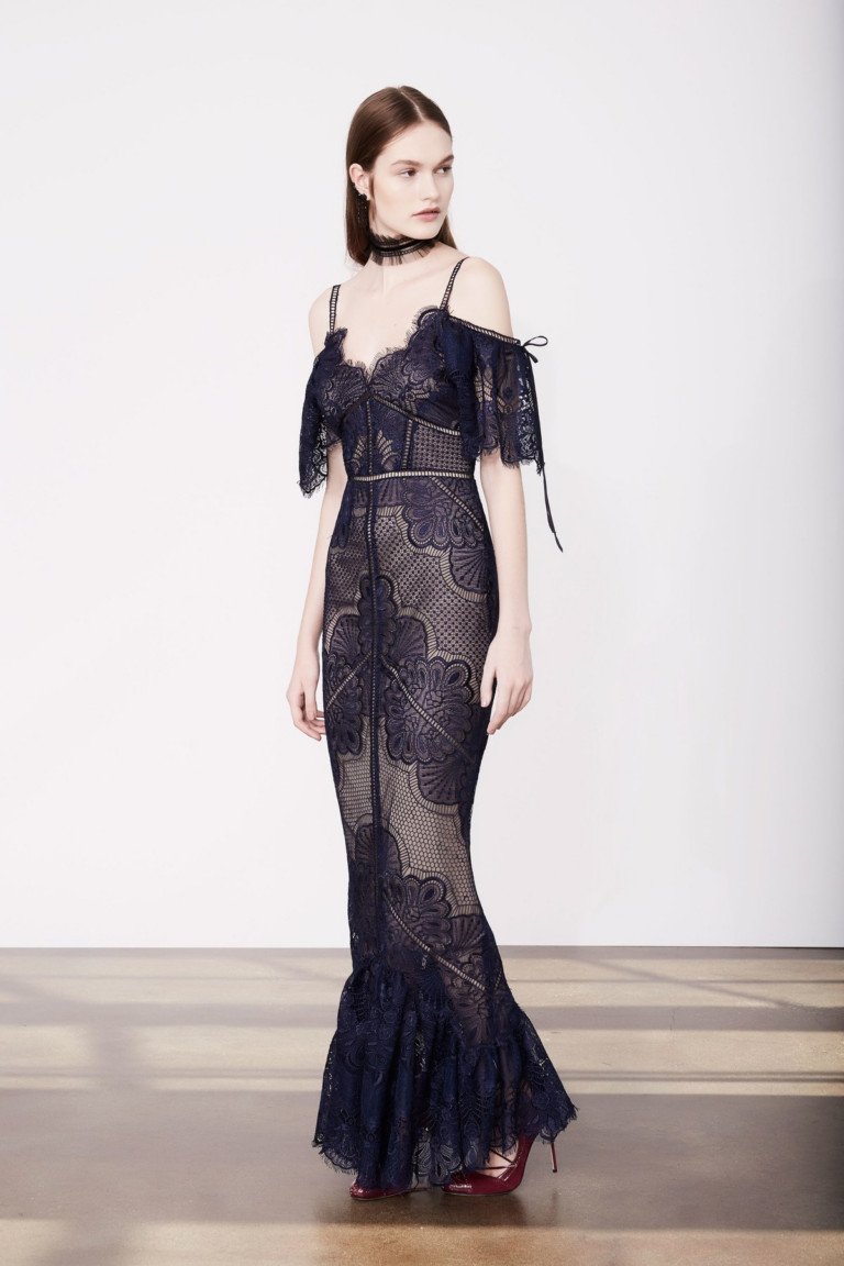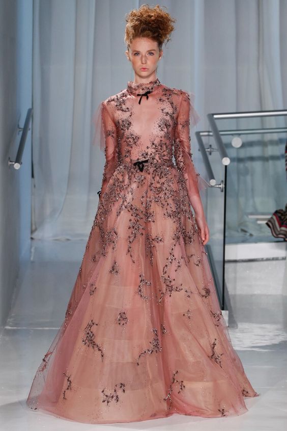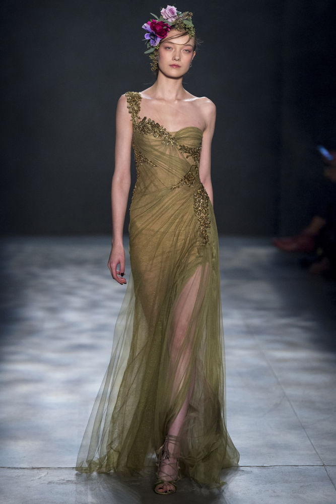 Les nouvelles collections de robes en organza transparent de Marchesa sont remplies de fleurs imprimées. Malgré la saison froide, la robe noire translucide du Nouvel An avec des ornements floraux est incroyablement belle.