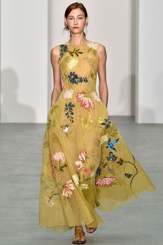 Et il n'est pas nécessaire de choisir une robe jaune unie, une broderie dorée sur une robe d'une teinte sombre suffira, et vous êtes la reine du soir!