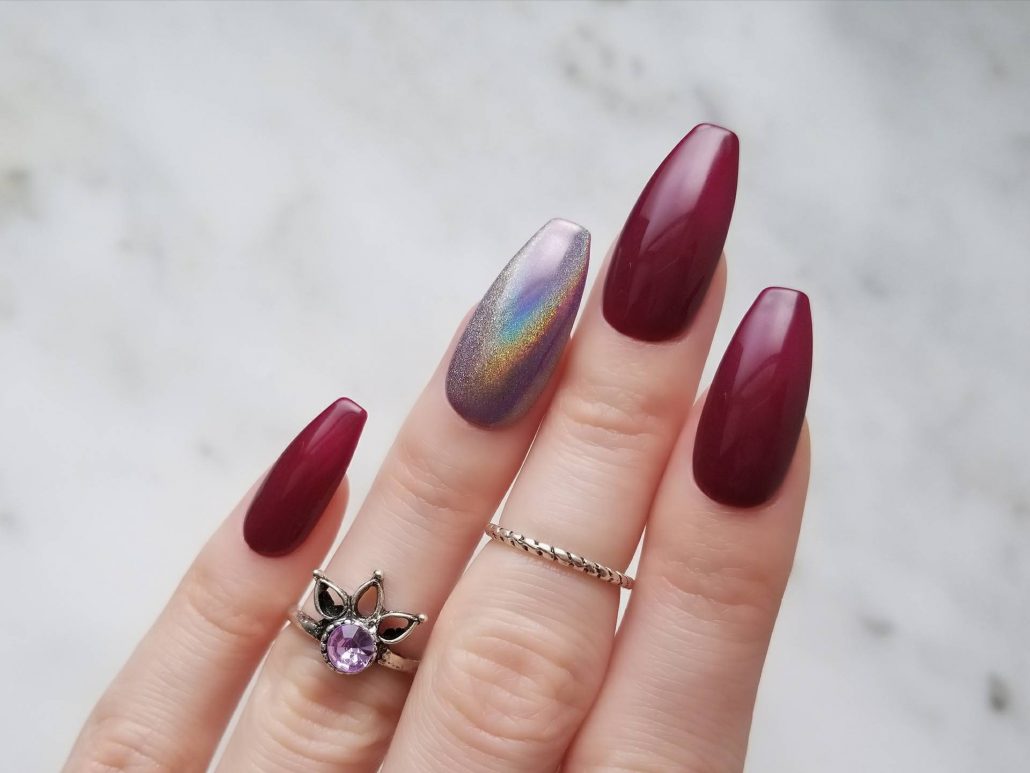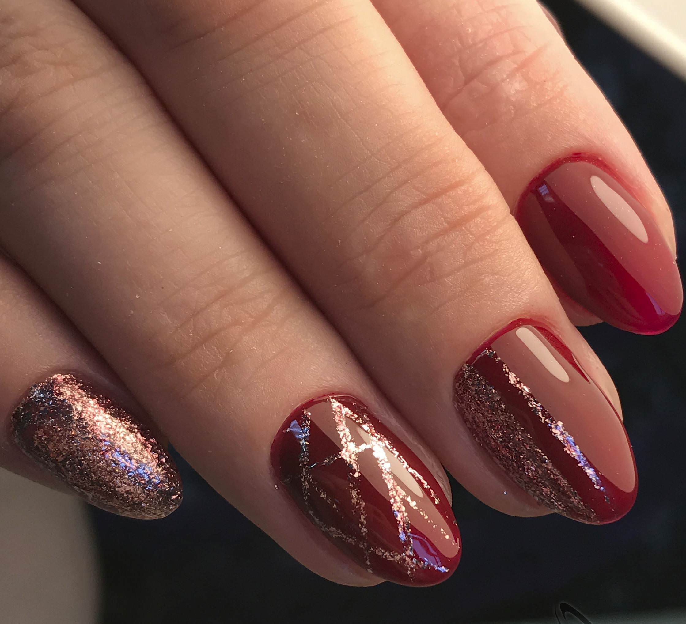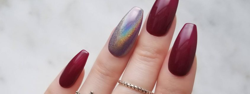 Finition brillante dans des tons de cerise - un magnifique design indépendant des ongles.