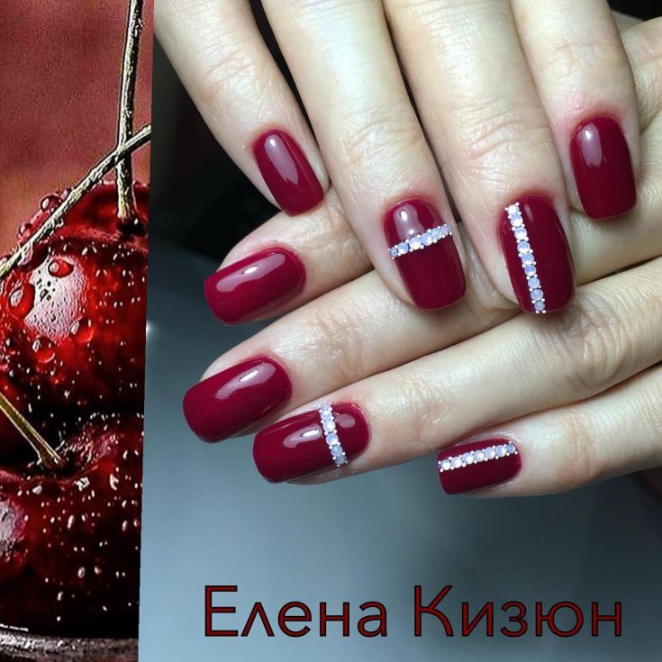 Les mains féminines bien soignées étaient toujours soulignées par une belle manucure. Toutes les couleurs de vernis ne font pas plaisir et n'attirent les yeux, comme une manucure dans des tons riches de cerise. Aujourd'hui, le nail art aux cerises uni a modifié les stéréotypes de la perception du rouge en manucure. Les femmes modernes choisissent de plus en plus de créer une belle manucure avec une palette de couleurs cerise noire, ainsi que des tons de rubis, de bordeaux et de marsala. Une manucure simple cerise est parfaite pour créer un look à la mode pour tous les jours. La seule chose à faire est de choisir une teinte appropriée de vernis à la cerise.